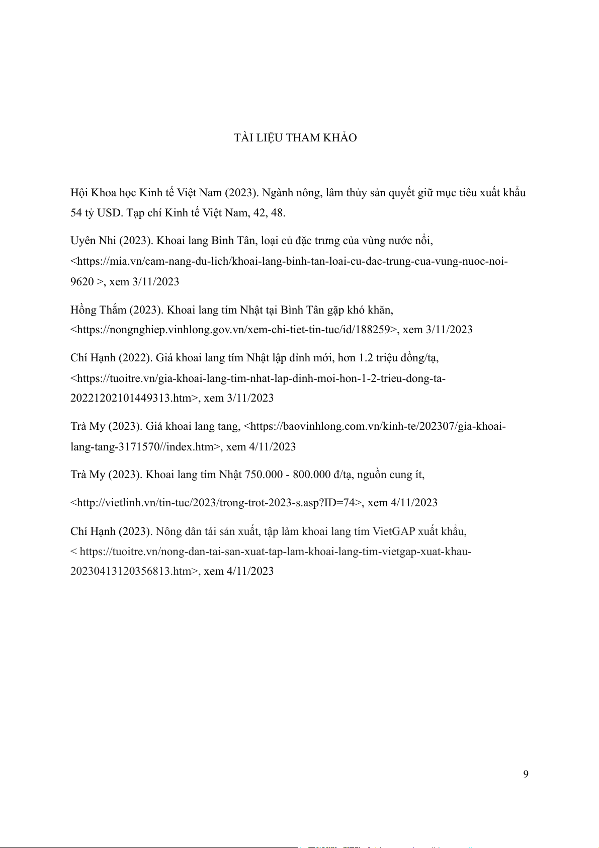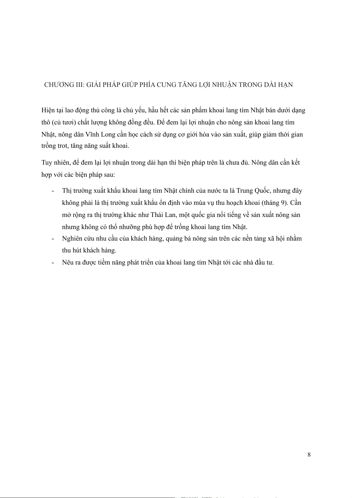 Nêu ra được tiềm năng phát triển của khoai lang tím Nhật tới các nhà đầu tư. 8 TÀI LIỆU THAM KHẢO
