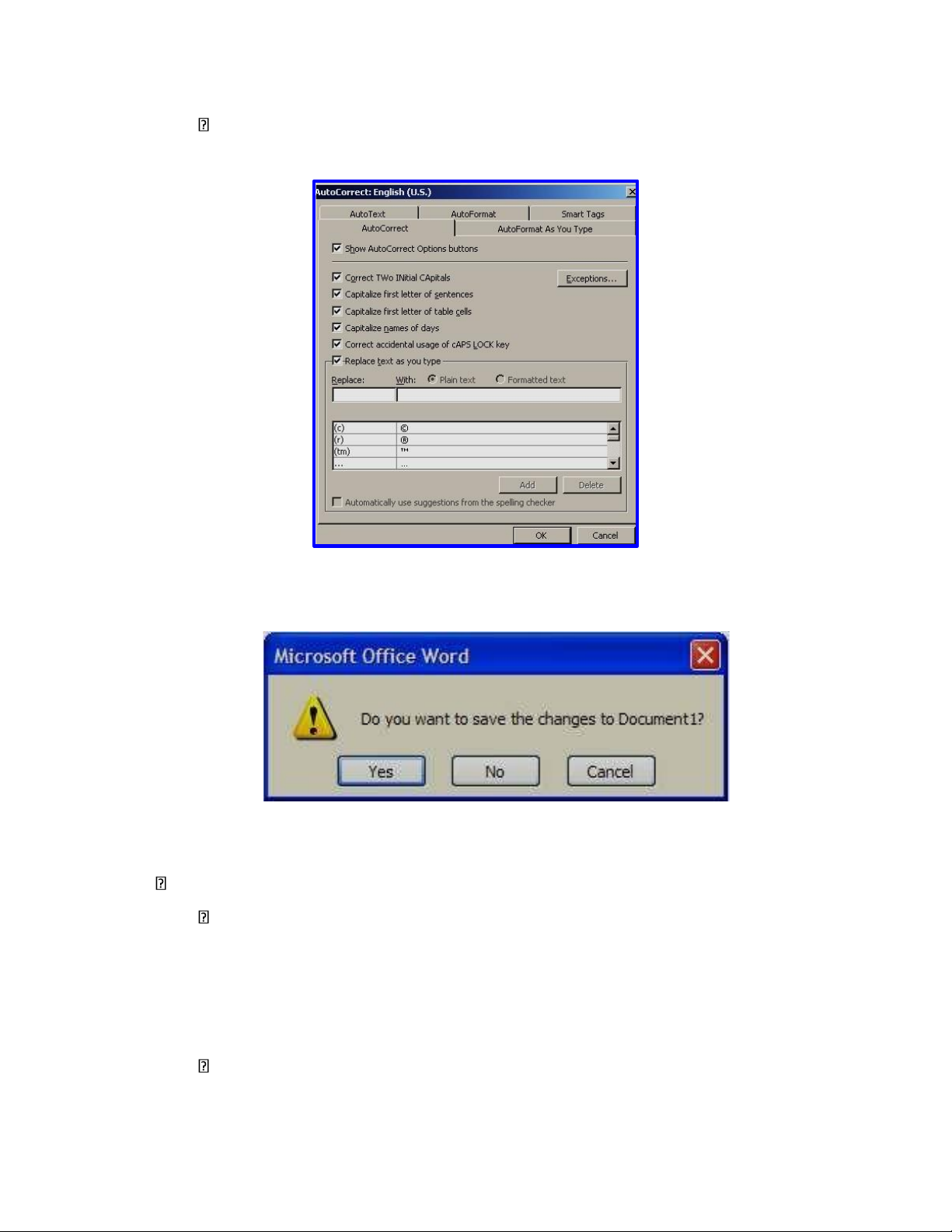 Ví dụ: Hộp thoại AutoCorrect có năm thẻ: AutoCorrect, AutoFormat As You Type,