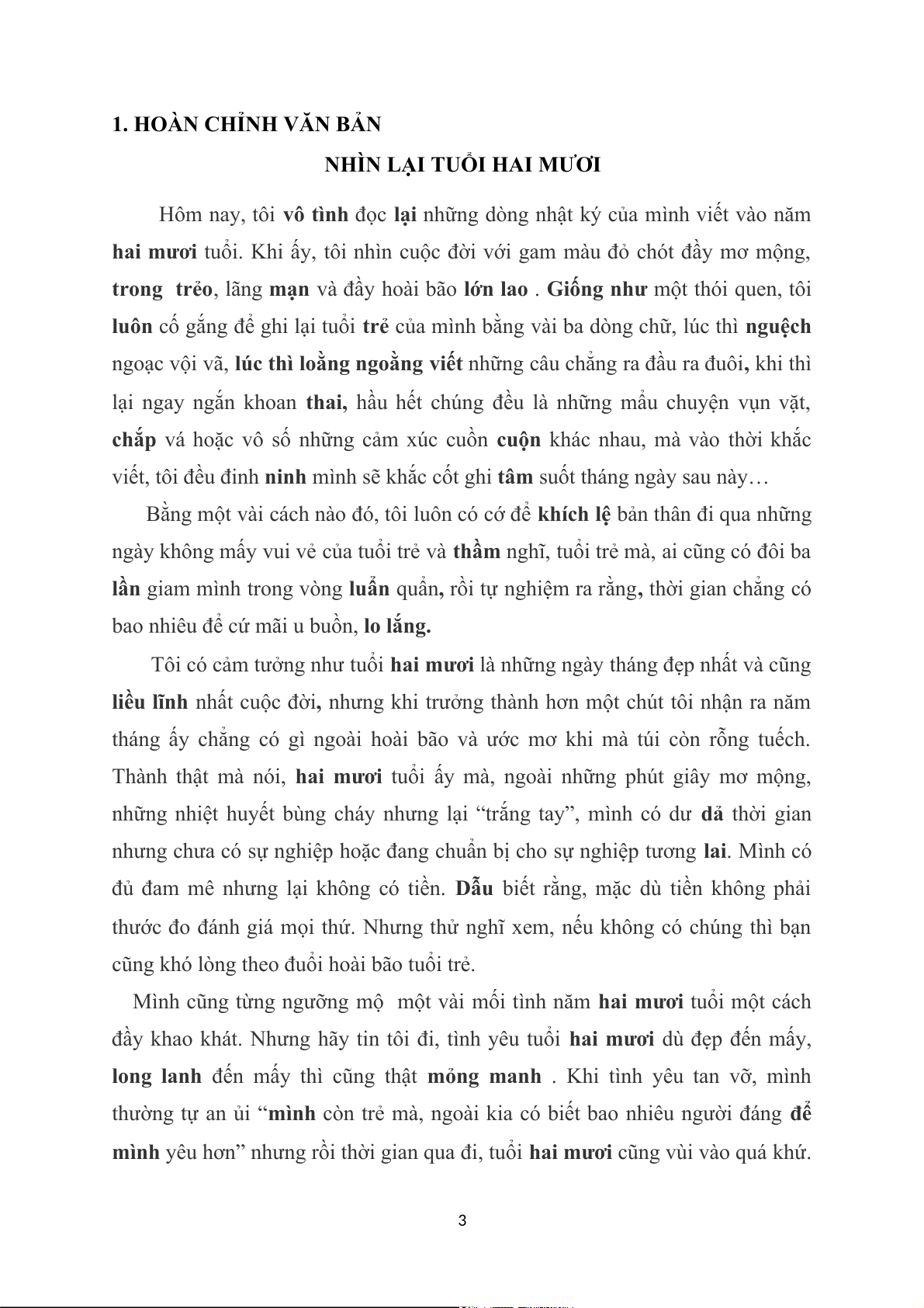 NHÌN LẠI TUỔI HAI MƯƠI