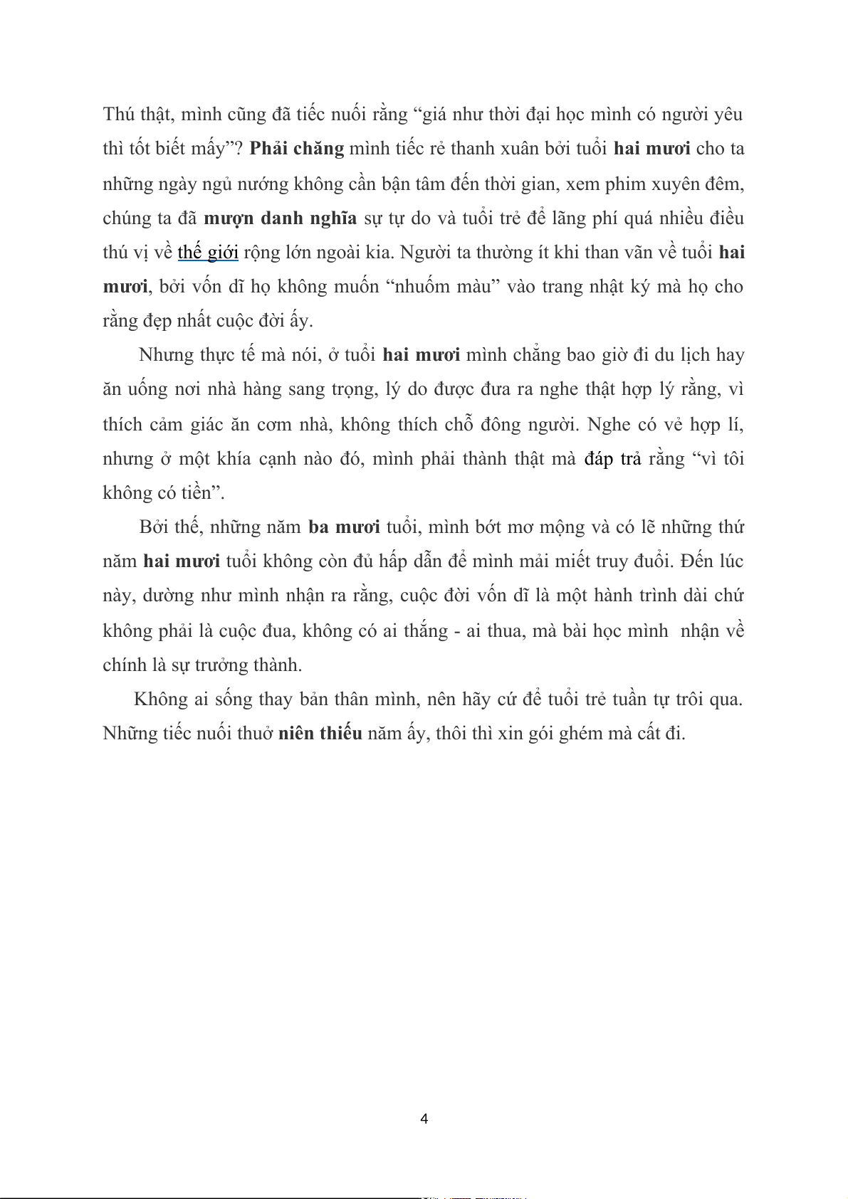 đầy khao khát. Nhưng hãy tin tôi đi, tình yêu tuổi hai mươi dù đẹp đến mấy,