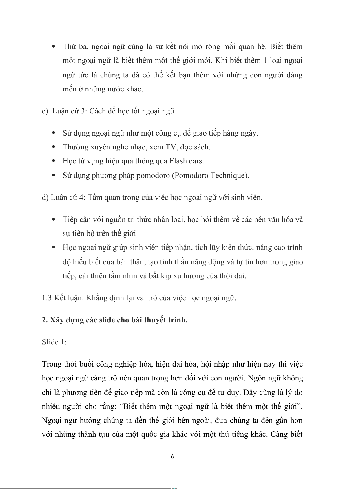 1.3 Kết luận: Khẳng định lại vai trò của việc học ngoại ngữ.........................6