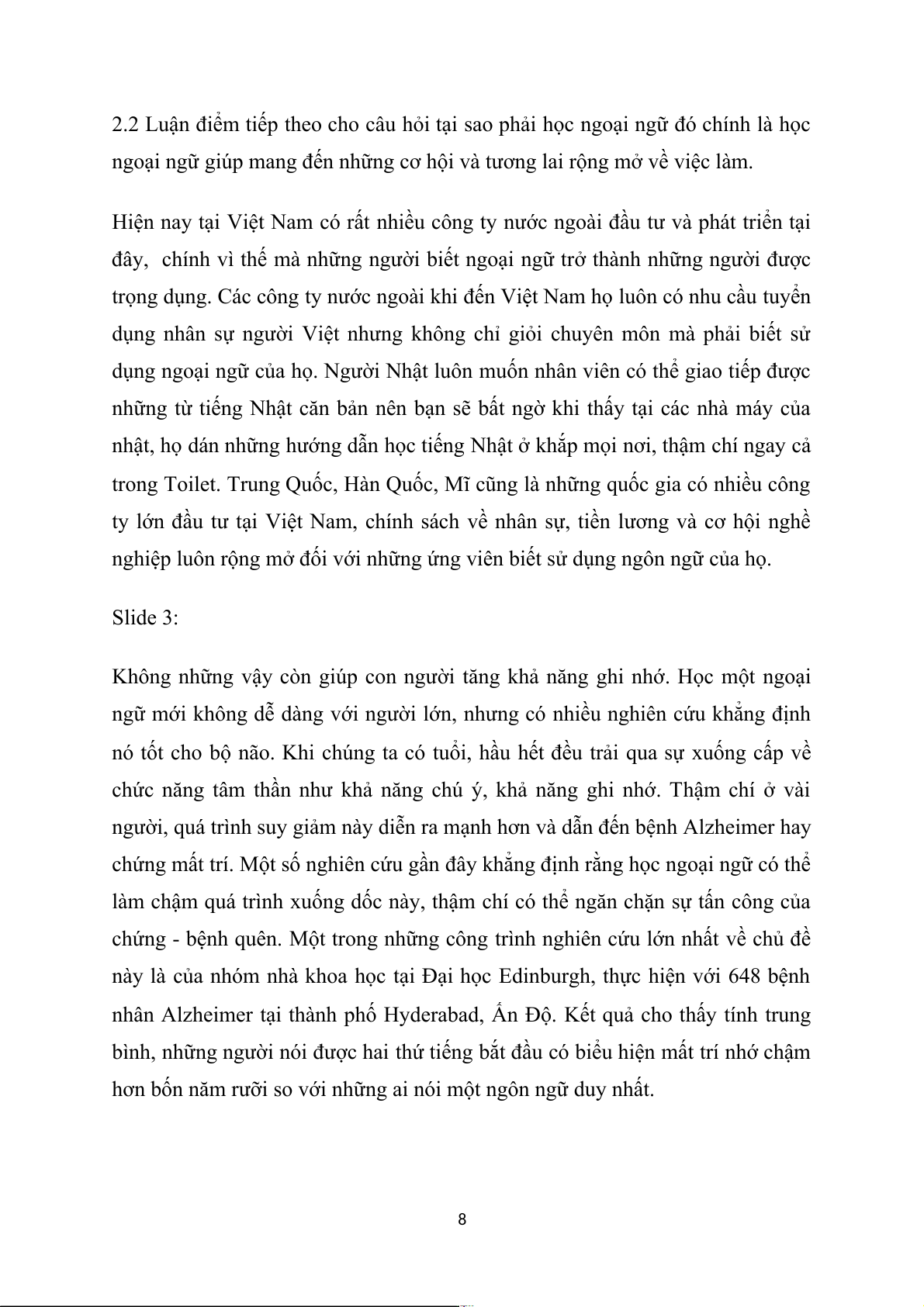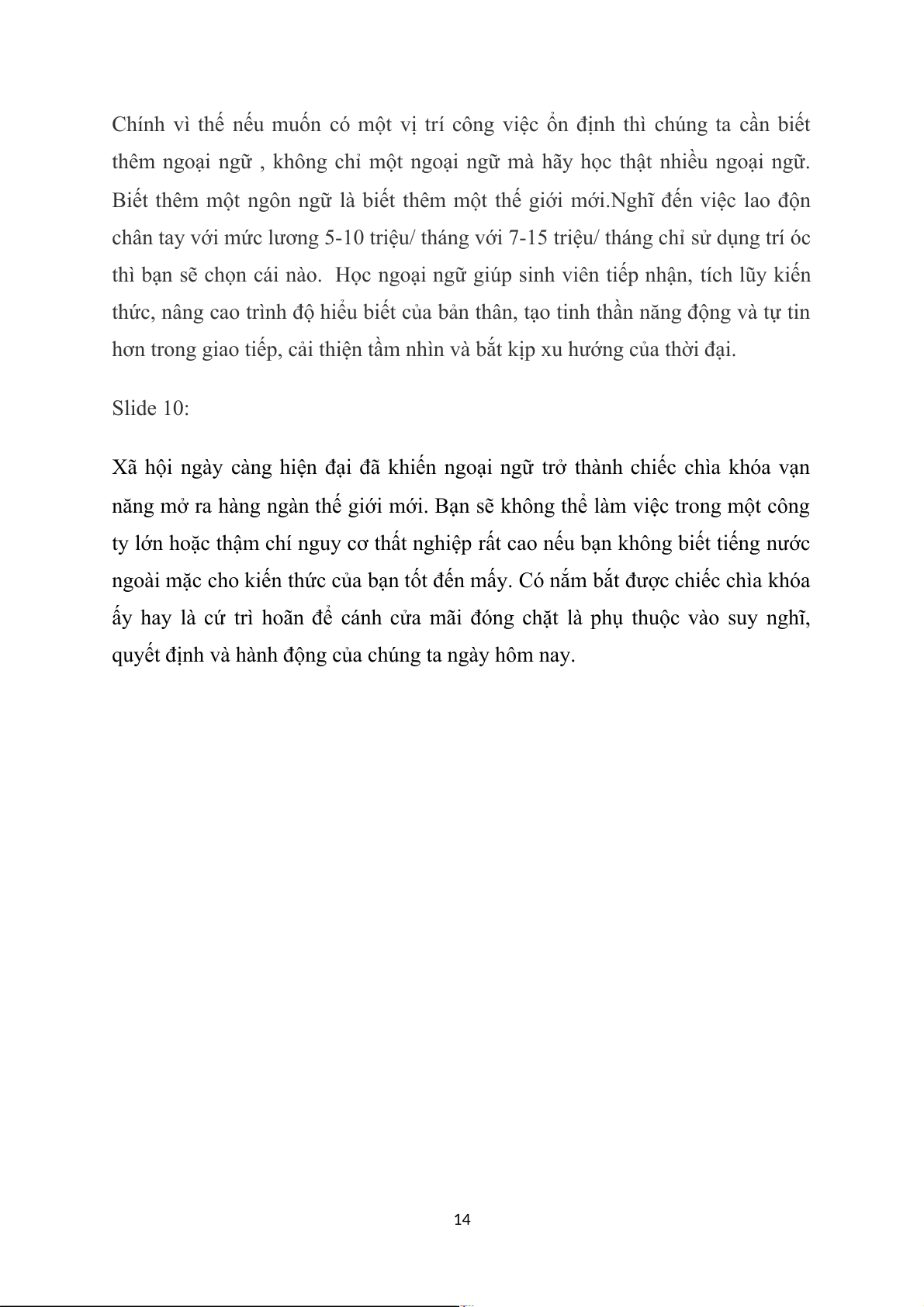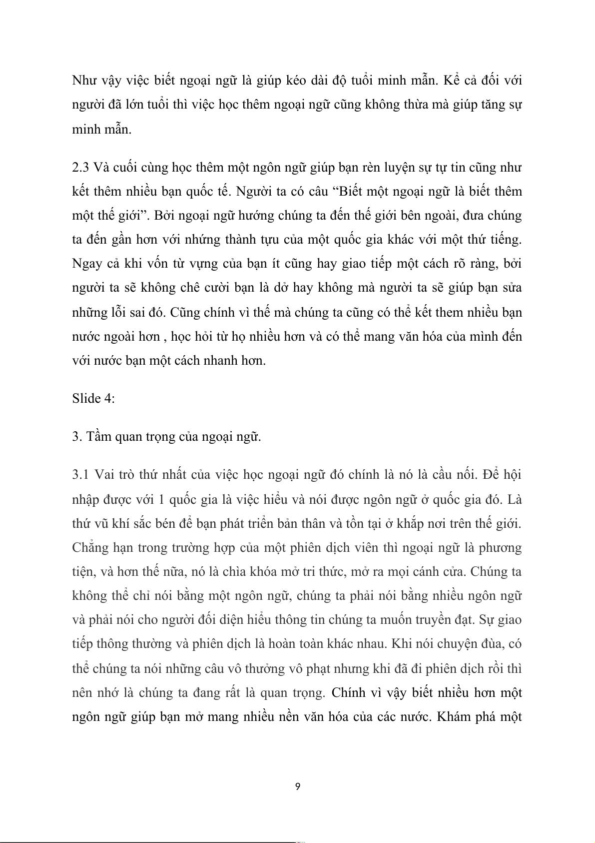 thực hành và phát triển môn ngoại ngữ mà bạn có trong mình. Slide 9: