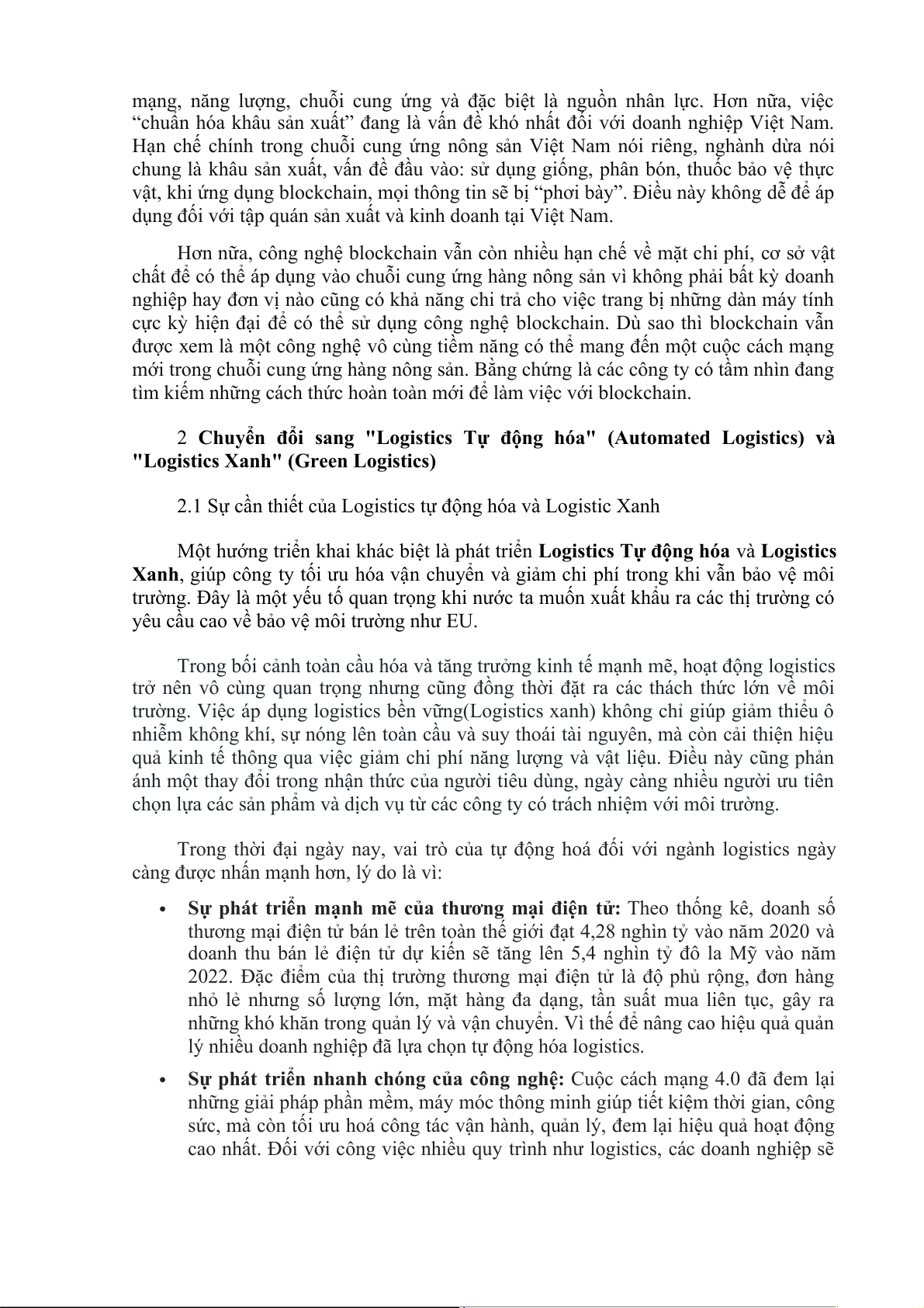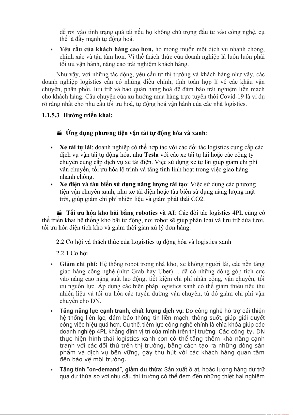 tạo và xe tải điện. Nếu các doanh nghiệp áp dụng mô hình Logistics tự động hóa và