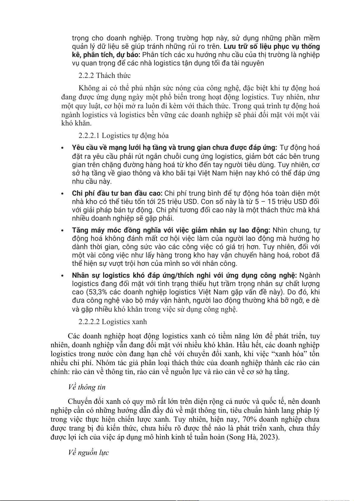 nhân lực trực tiếp và cán bộ quản lý đang ở trình độ thấp. Theo dự báo, ngành logistics
