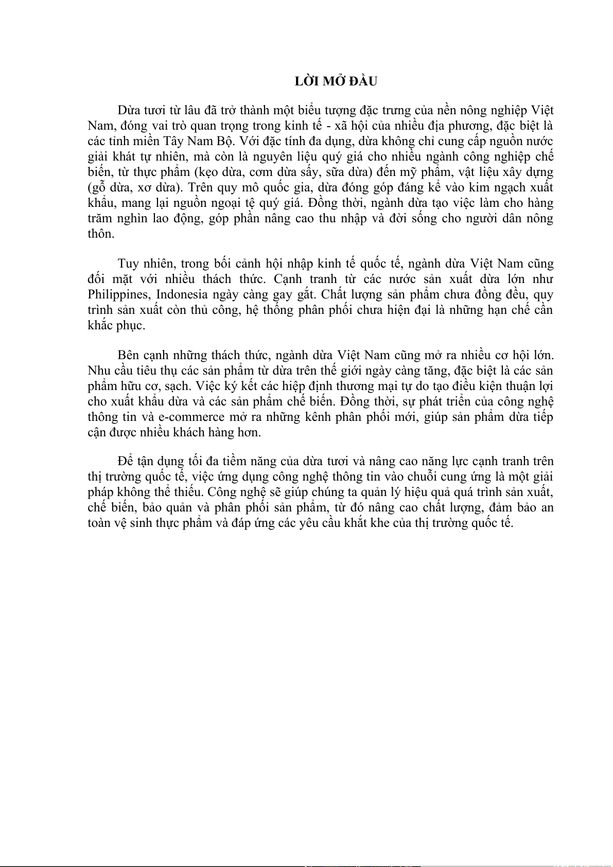 Tuy nhiên, trong bối cảnh hội nhập kinh tế quốc tế, ngành dừa Việt Nam cũng
