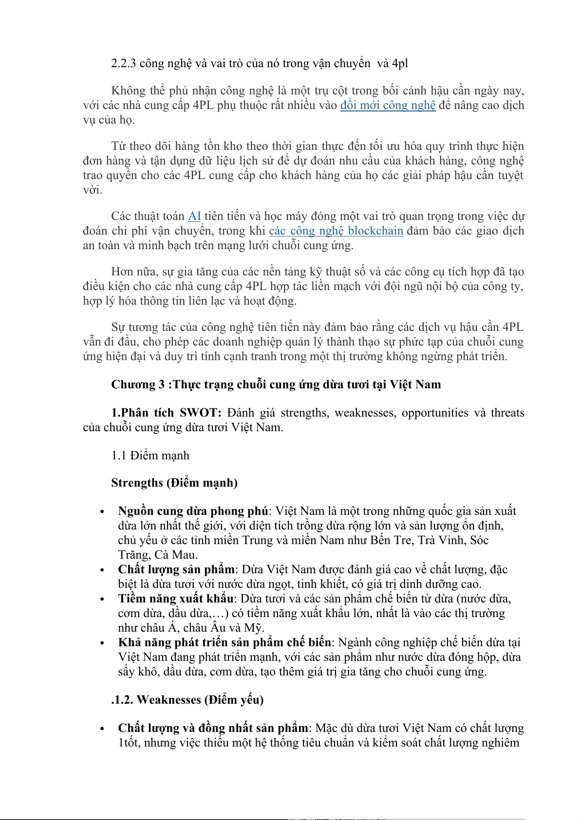 Phân tích thực trạng chuỗi cung ứng dừa tươi của Công ty Kim Thành. o