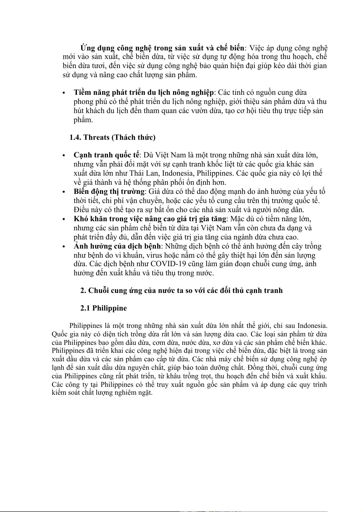 đối mặt với nhiều thách thức. Cạnh tranh từ các nước sản xuất dừa lớn như