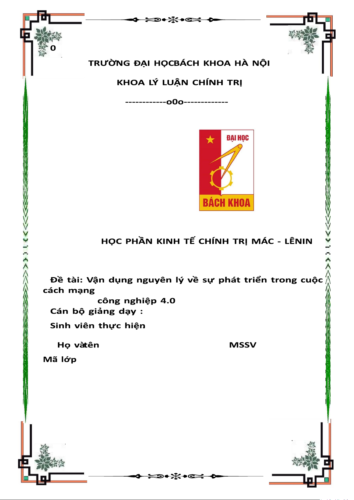 cuộc “ Cách mạng Công nghiệp 4.0”” để làm tiểu luận.