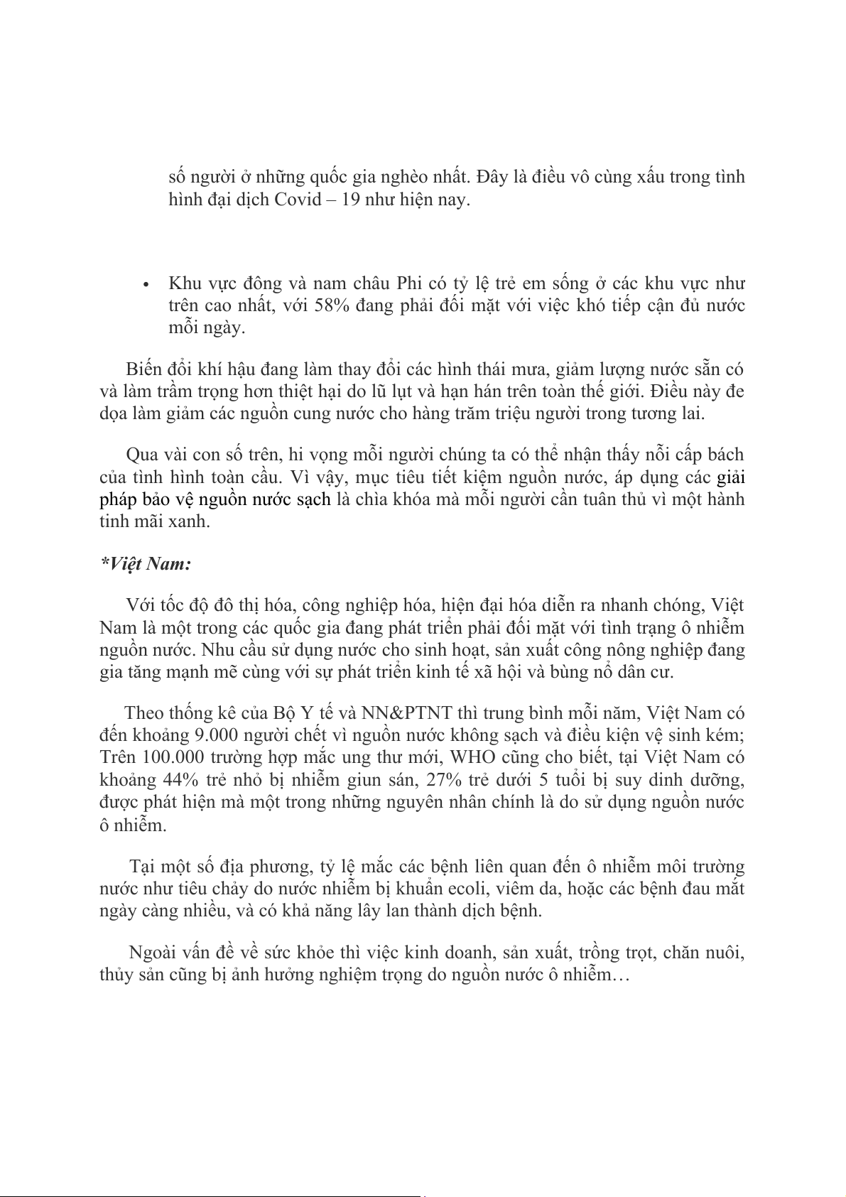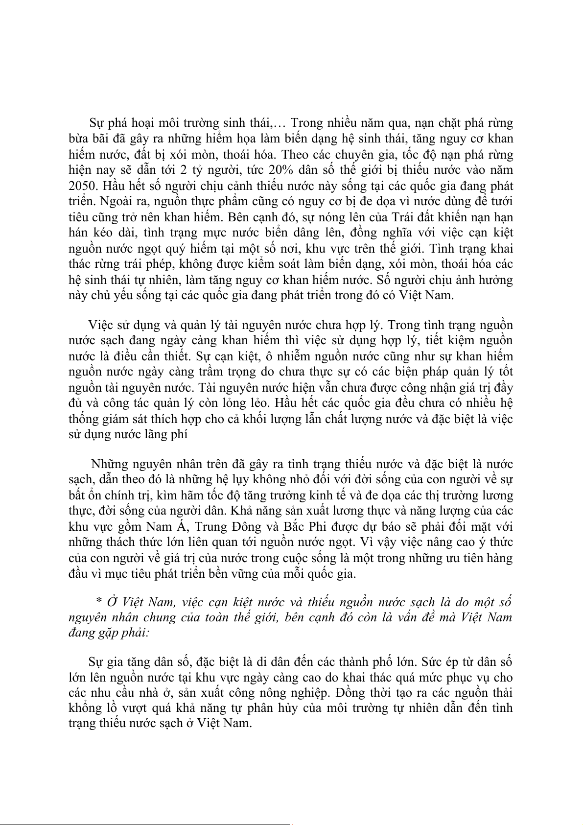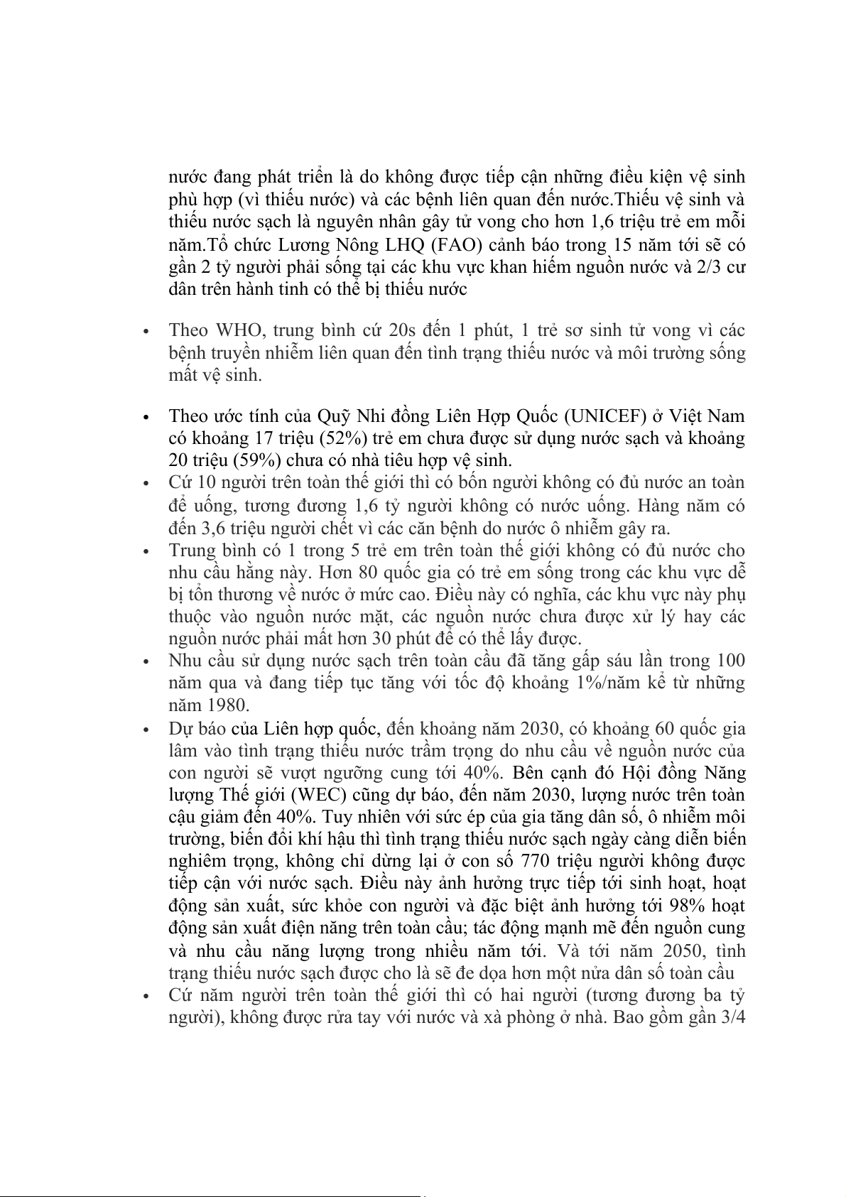 Vấn đề thiếu nước, đặc biệt là nguồn nước sạch trên toàn thế giới và Việt Nam hiện nay.