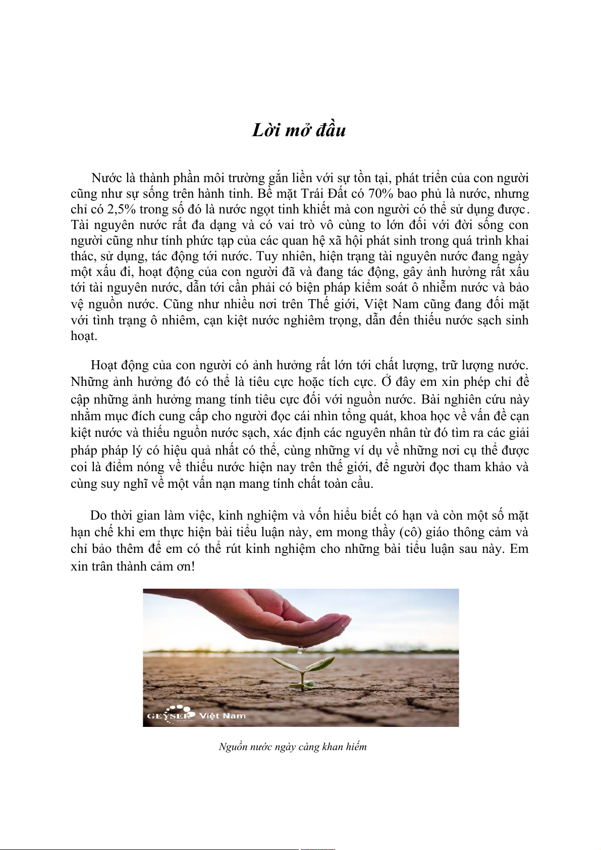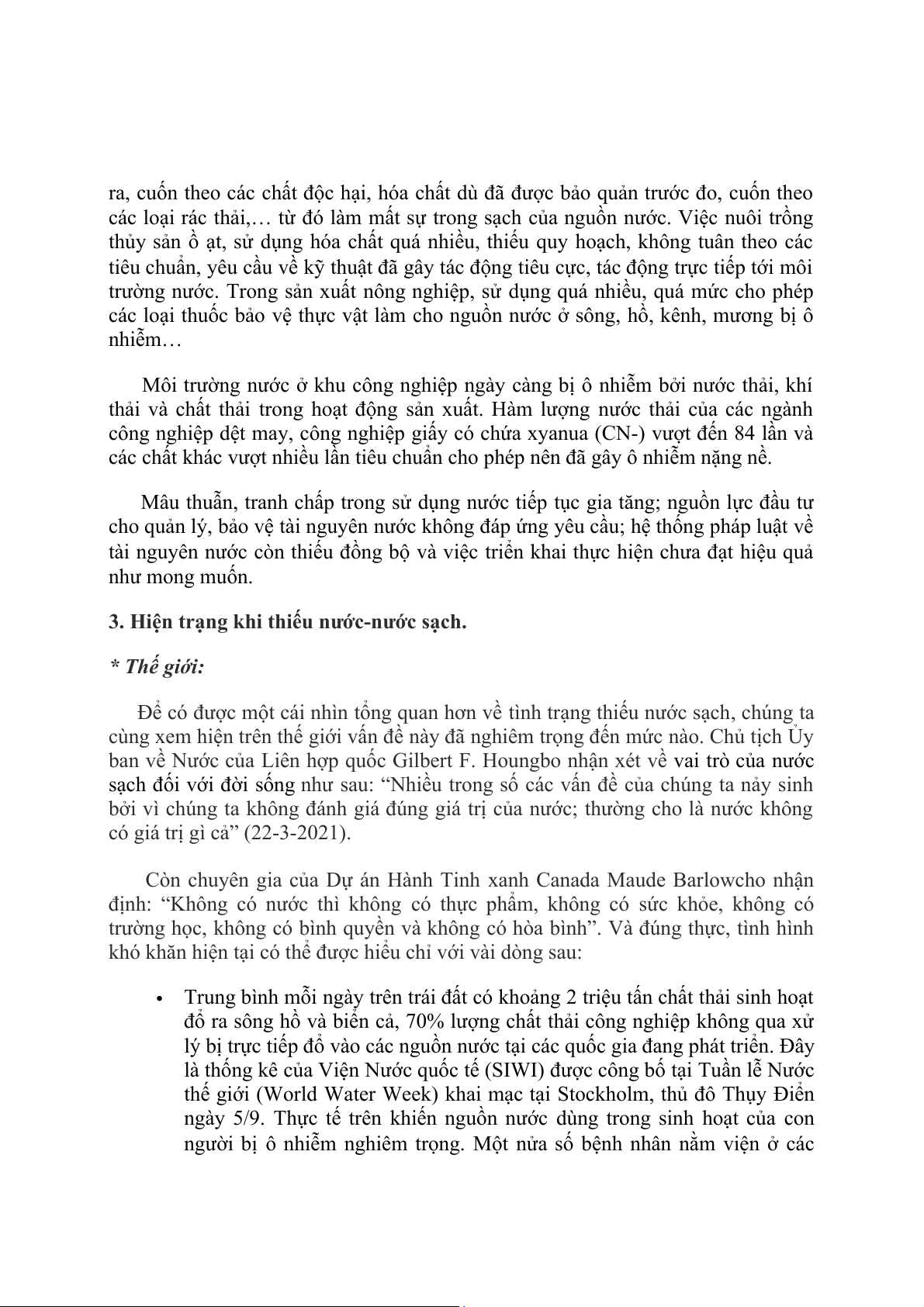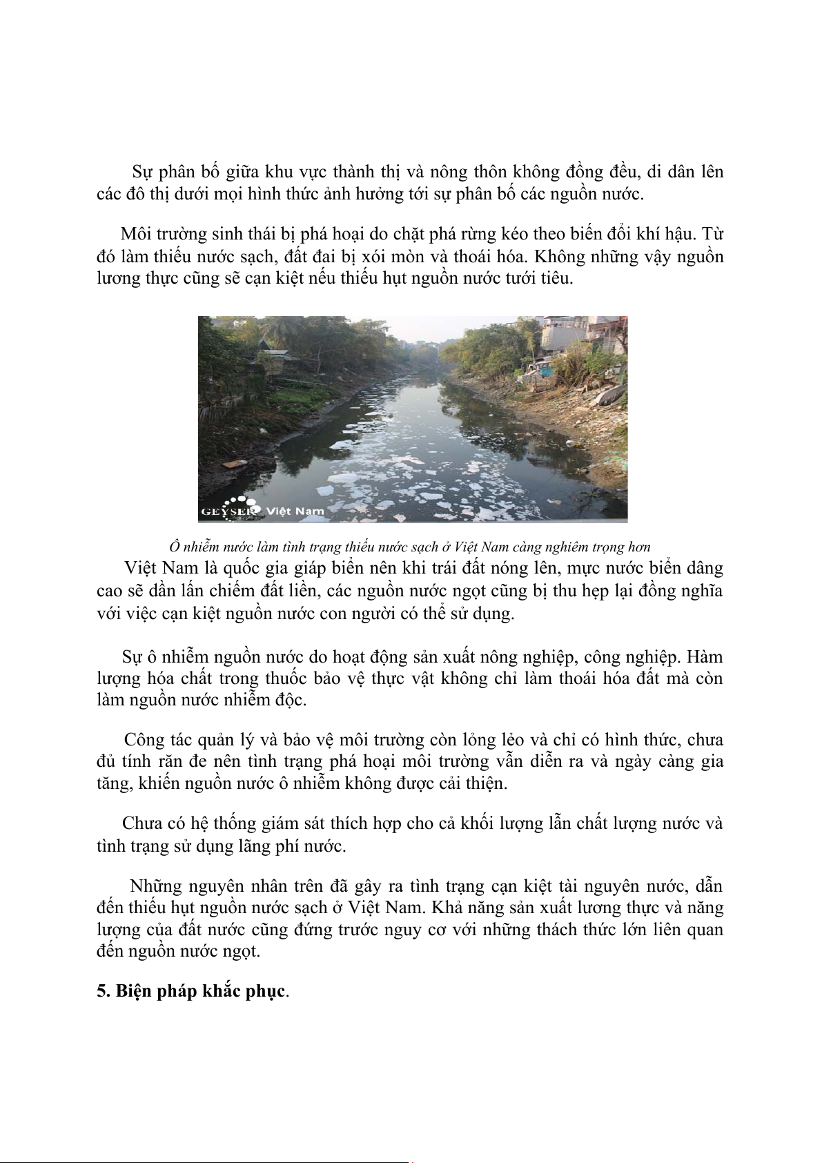 Vấn đề thiếu nước, đặc biệt là nguồn nước sạch trên toàn thế giới và Việt Nam hiện nay.
