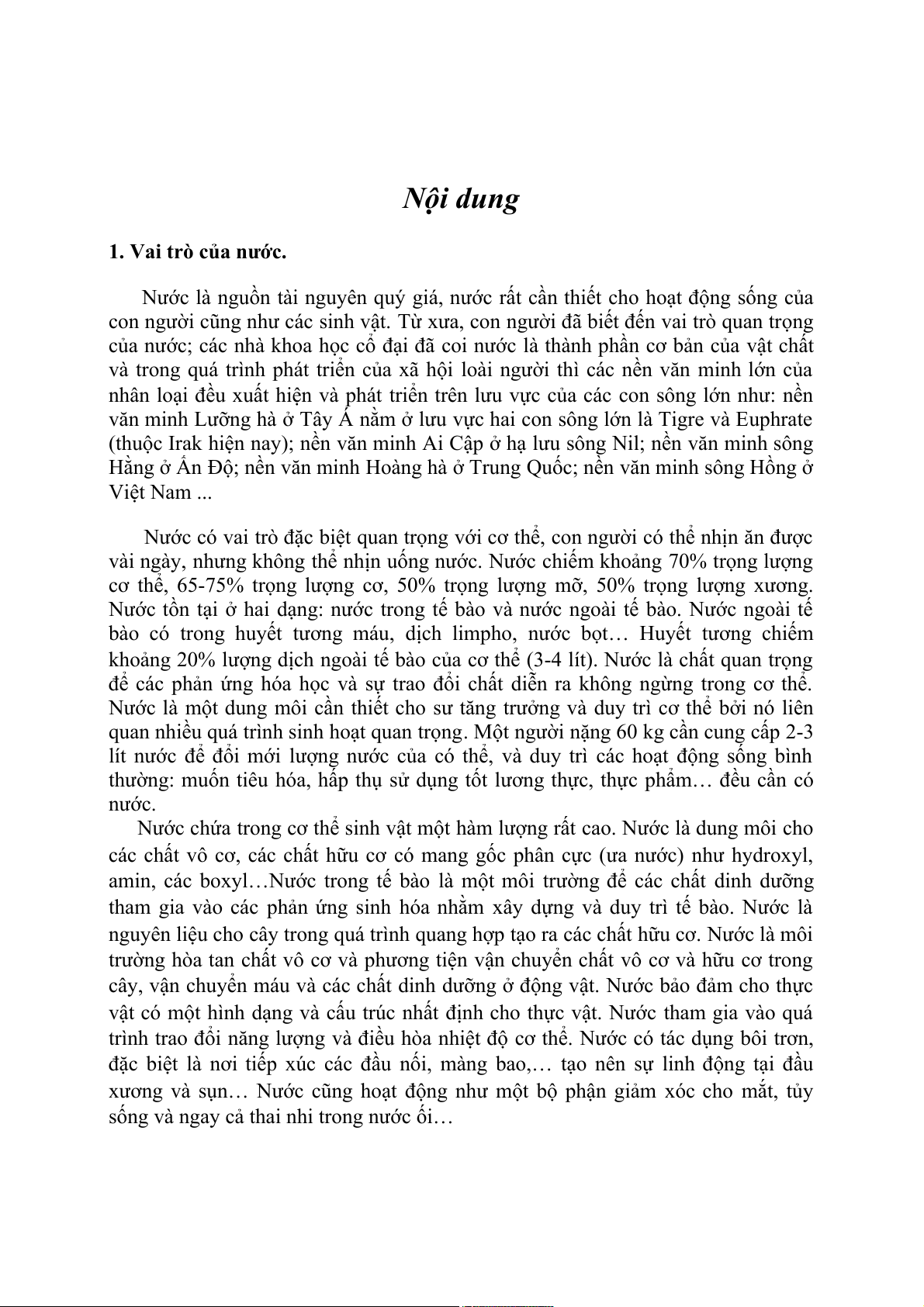 Nước là nguồn tài nguyên quý giá, nước rất cần thiết cho hoạt động sống của
