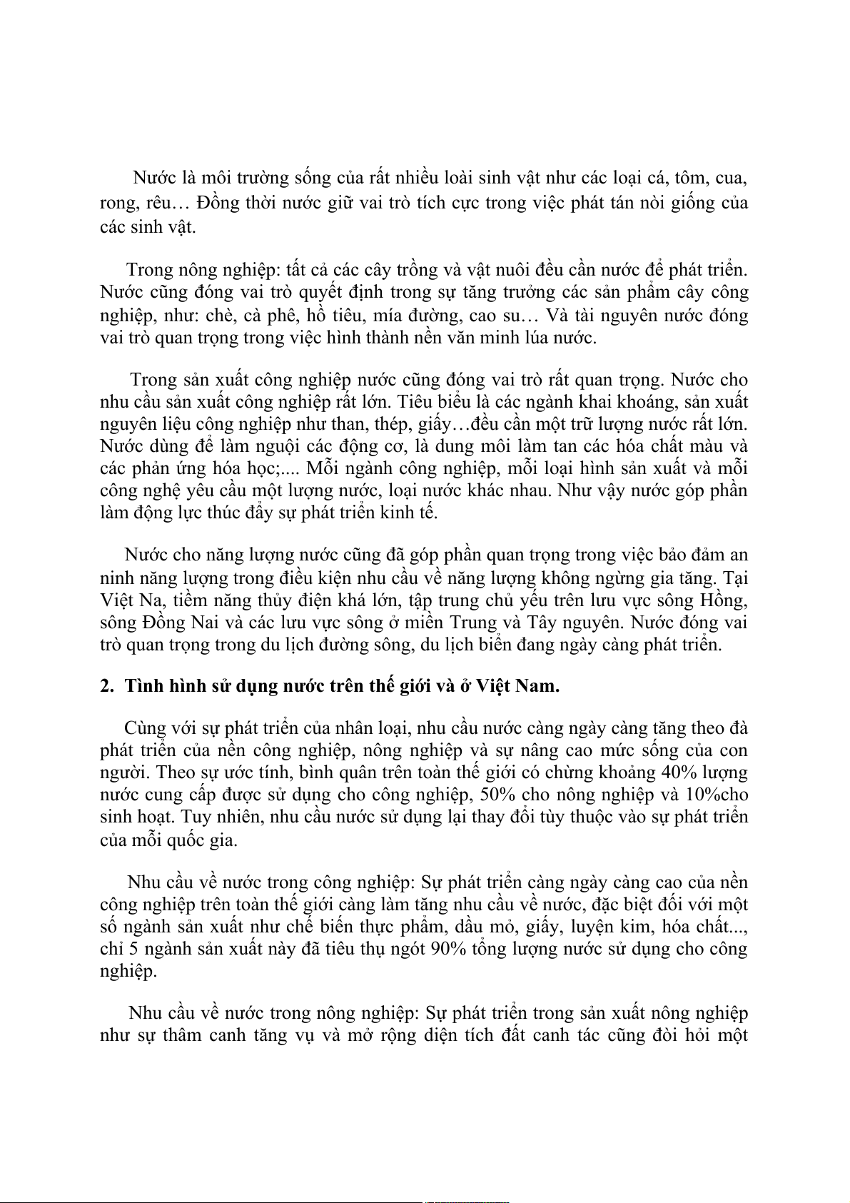2. Tình hình sử dụng nước trên thế giới và ở Việt Nam.