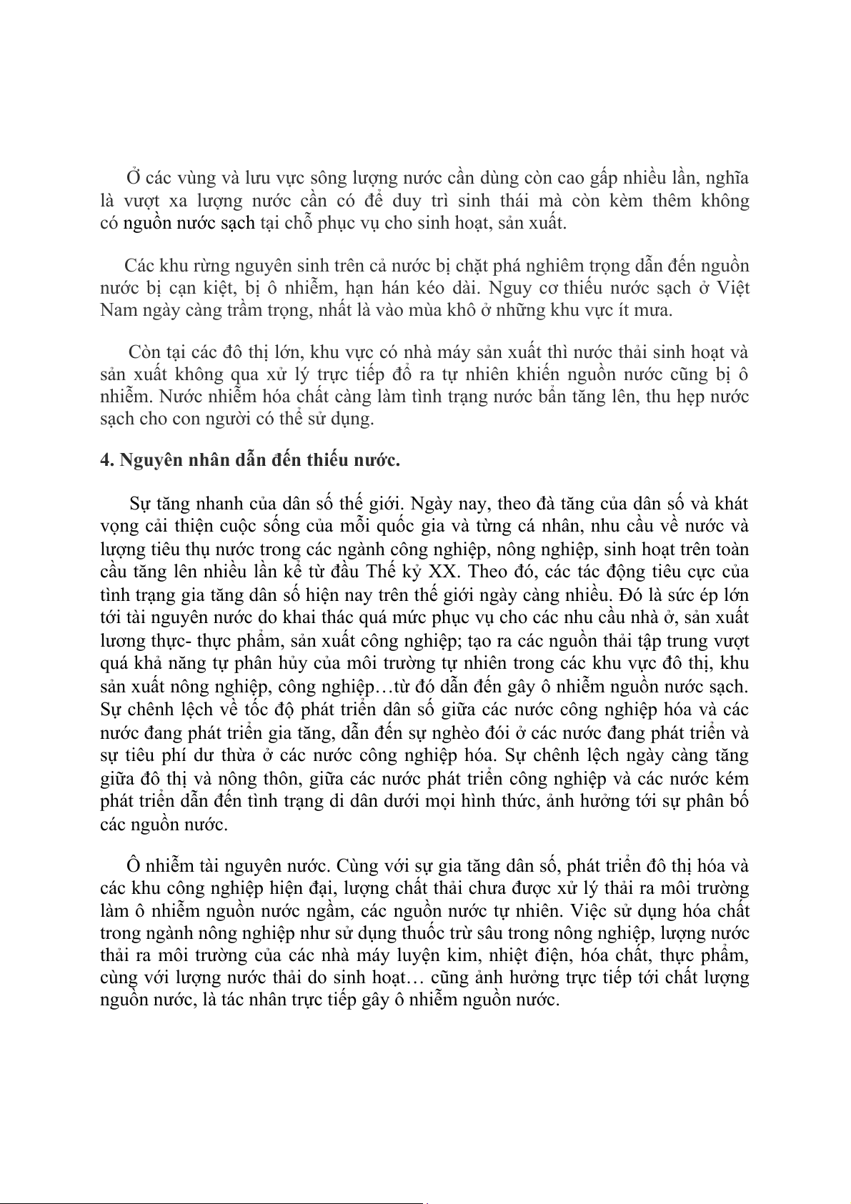 kiệt nước và thiếu nguồn nước sạch, xác định các nguyên nhân từ đó tìm ra các giải