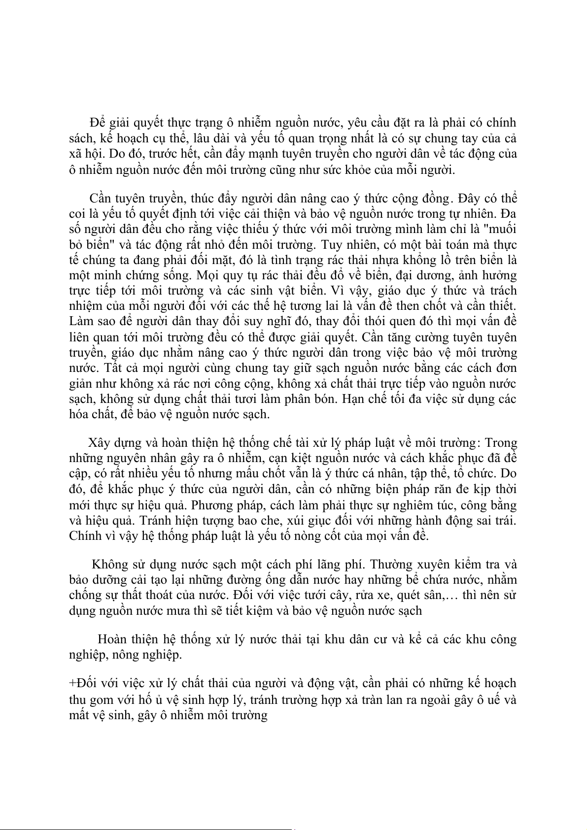 nước. Tất cả mọi người cùng chung tay giữ sạch nguồn nước bằng các cách đơn