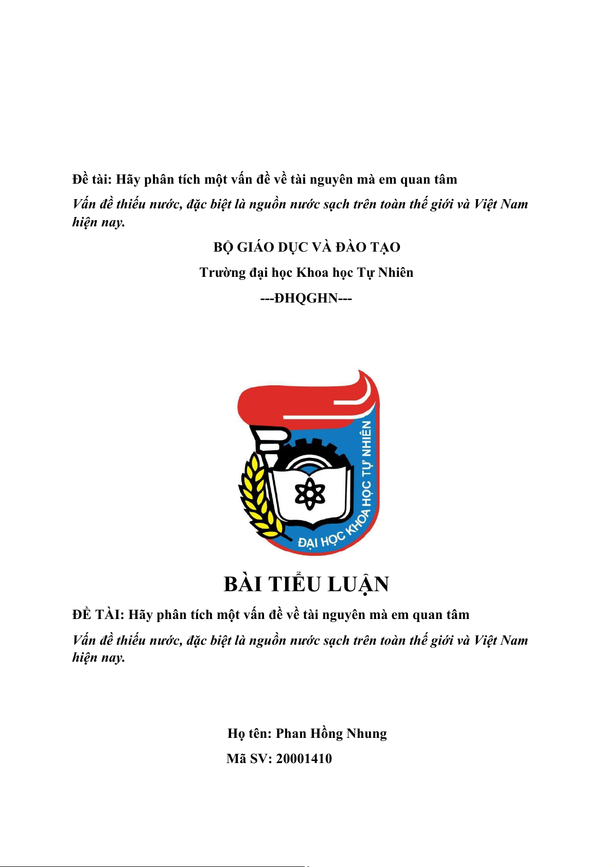 ĐỀ TÀI: Hãy phân tích một vấn đề về tài nguyên mà em quan tâm