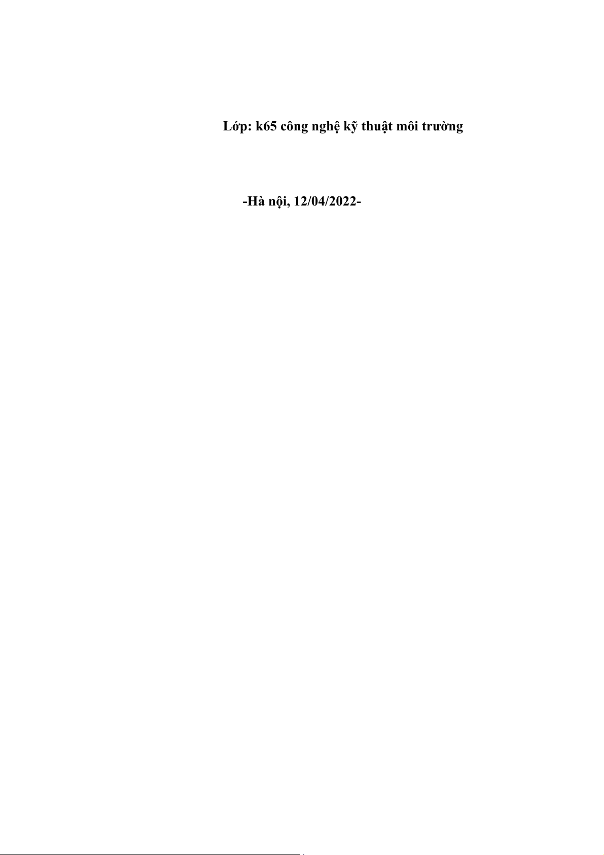 Lớp: k65 công nghệ kỹ thuật môi trường -Hà nội, 12/04/2022-