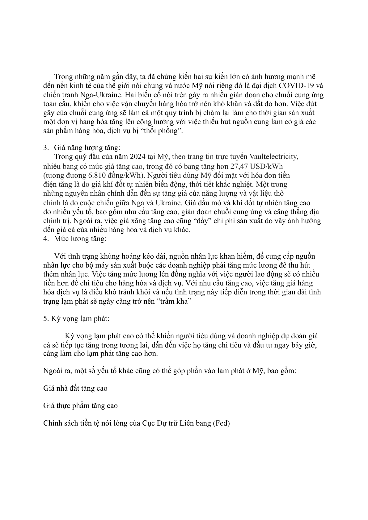 sản phẩm hàng hóa, dịch vụ bị “thổi phồng”. 3. Giá năng lượng tăng:
