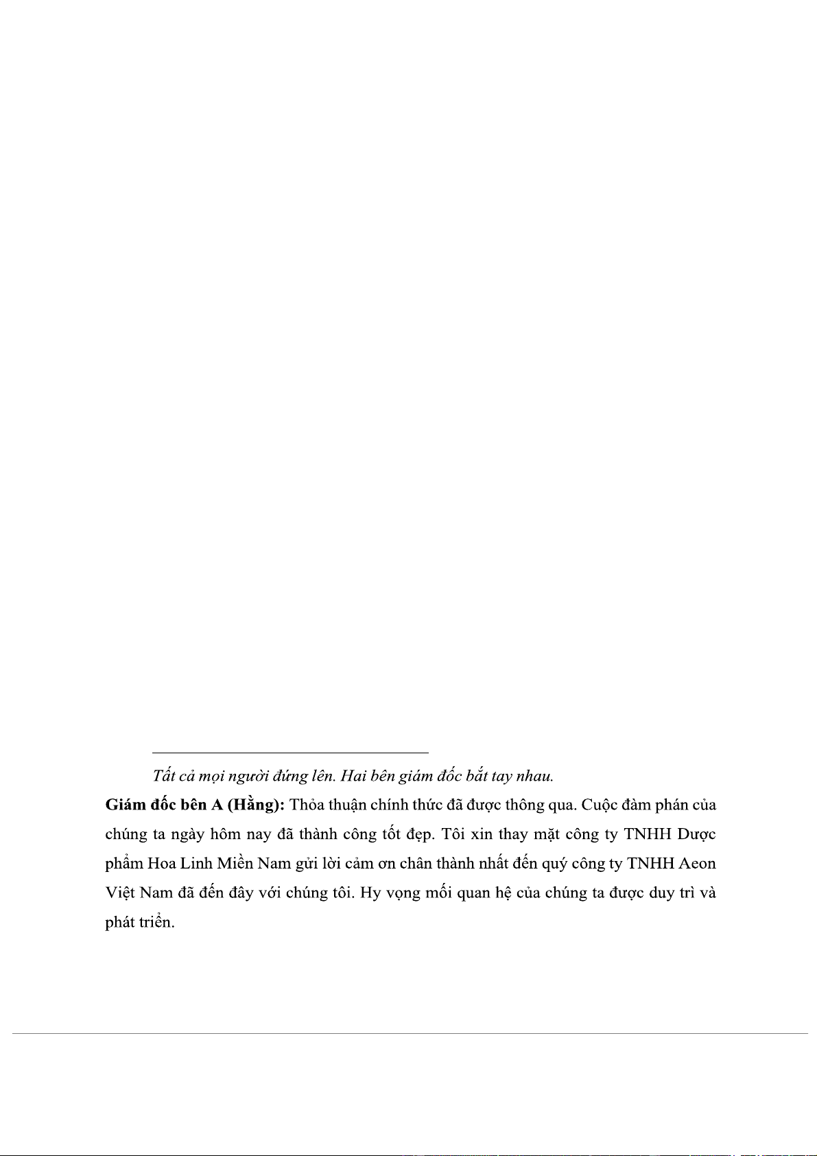 Giám đốc bên A (Hằng): Vậy là các công việc thỏa thuận đã xong. Các điều khoản đã