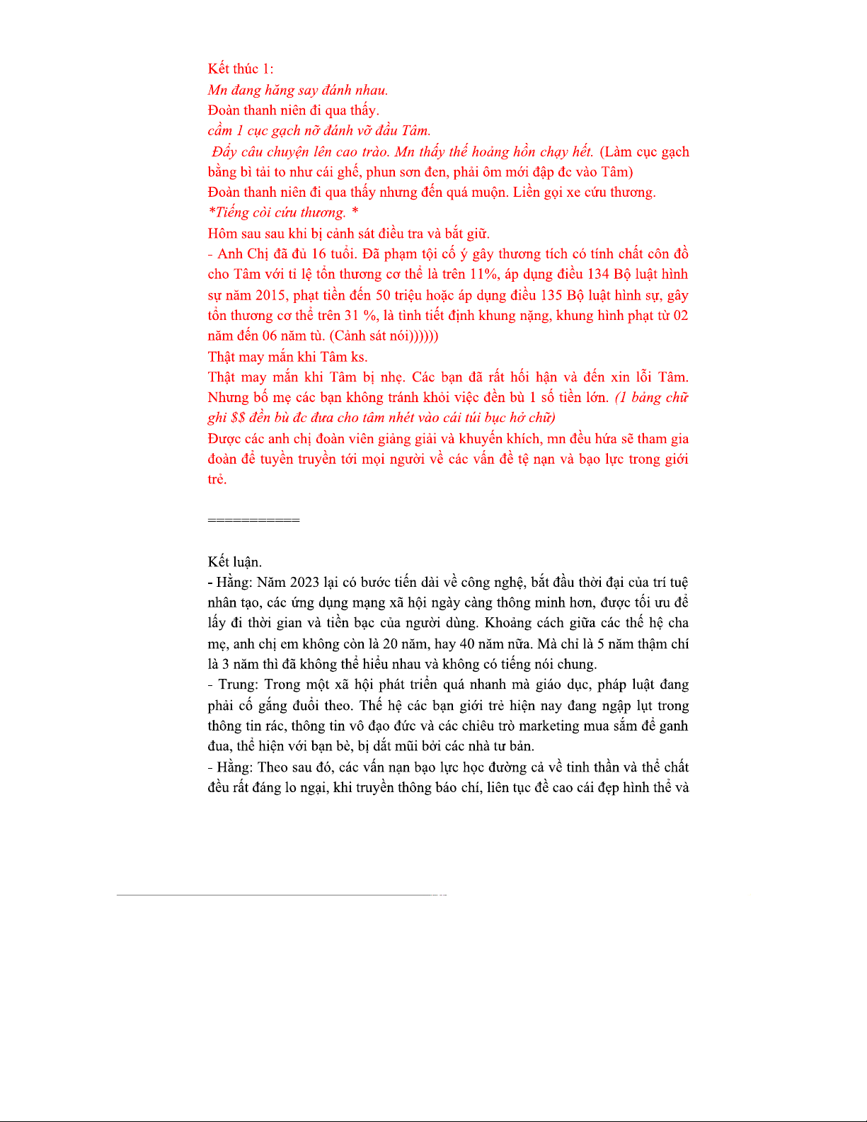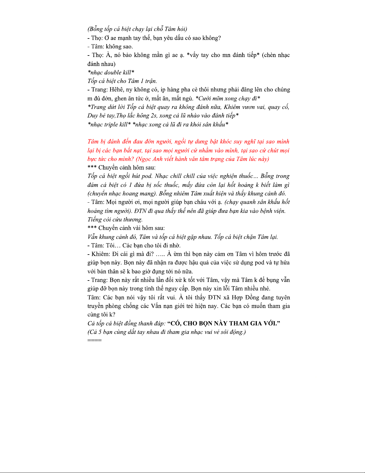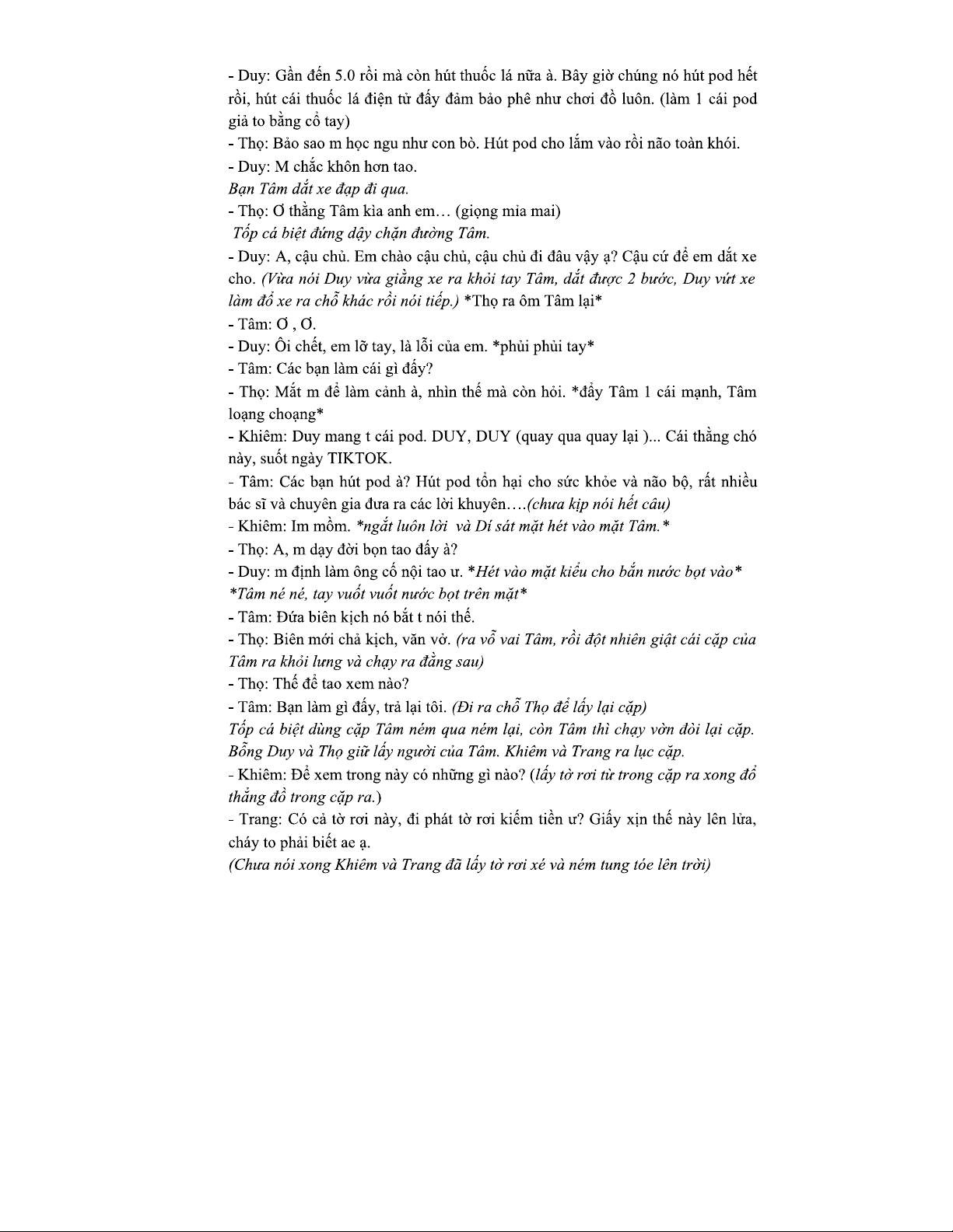 TIỂU PHẨM KỊCH VỀ VẤN NẠN GIỚI TRẺ HIỆN NAY (TIỂU PHẨM KỊCH)
