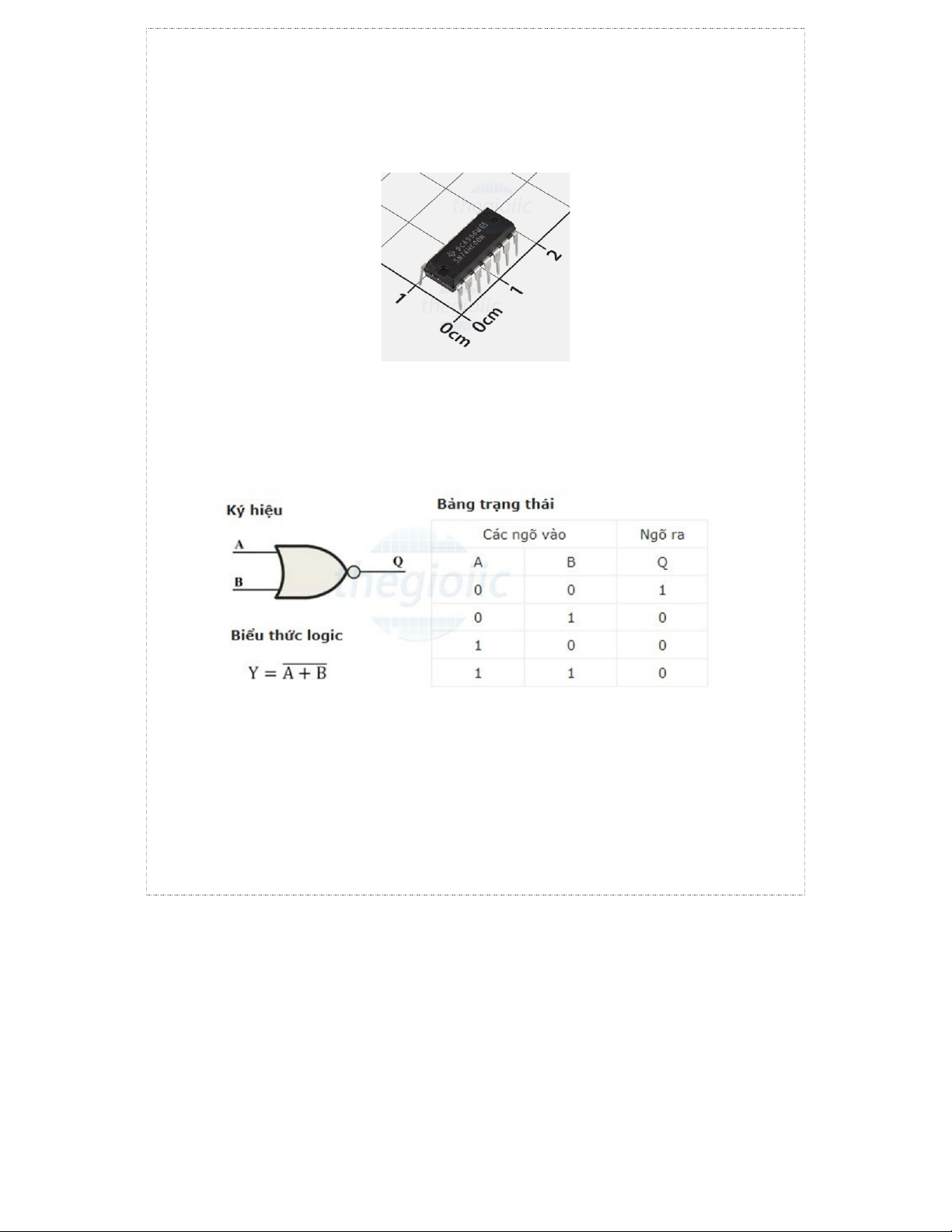 Ngõ ra cổng NAND = 0 khi tất cả các ngõ vào của nó bằng 1. IC cổng NAND 74HC00 + Cổng NOR