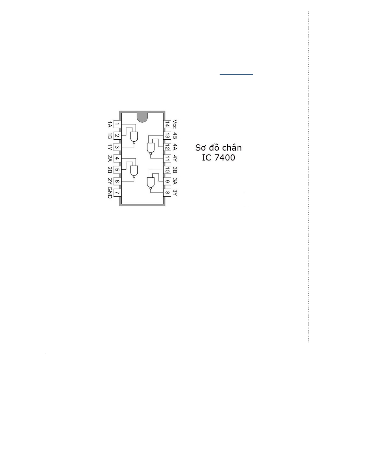 - Với 14 chân, gồm 4 cổng NAND 2 đầu vào, mỗi cổng sử dụng chân 2 đầu vào và