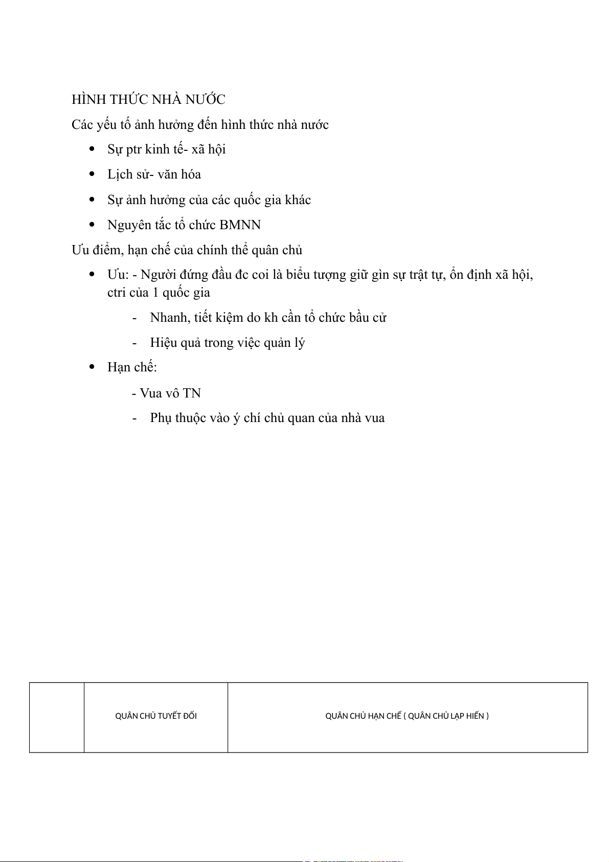 - Phụ thuộc vào ý chí chủ quan của nhà vua QUÂN CHỦ TUYẾT ĐỐI