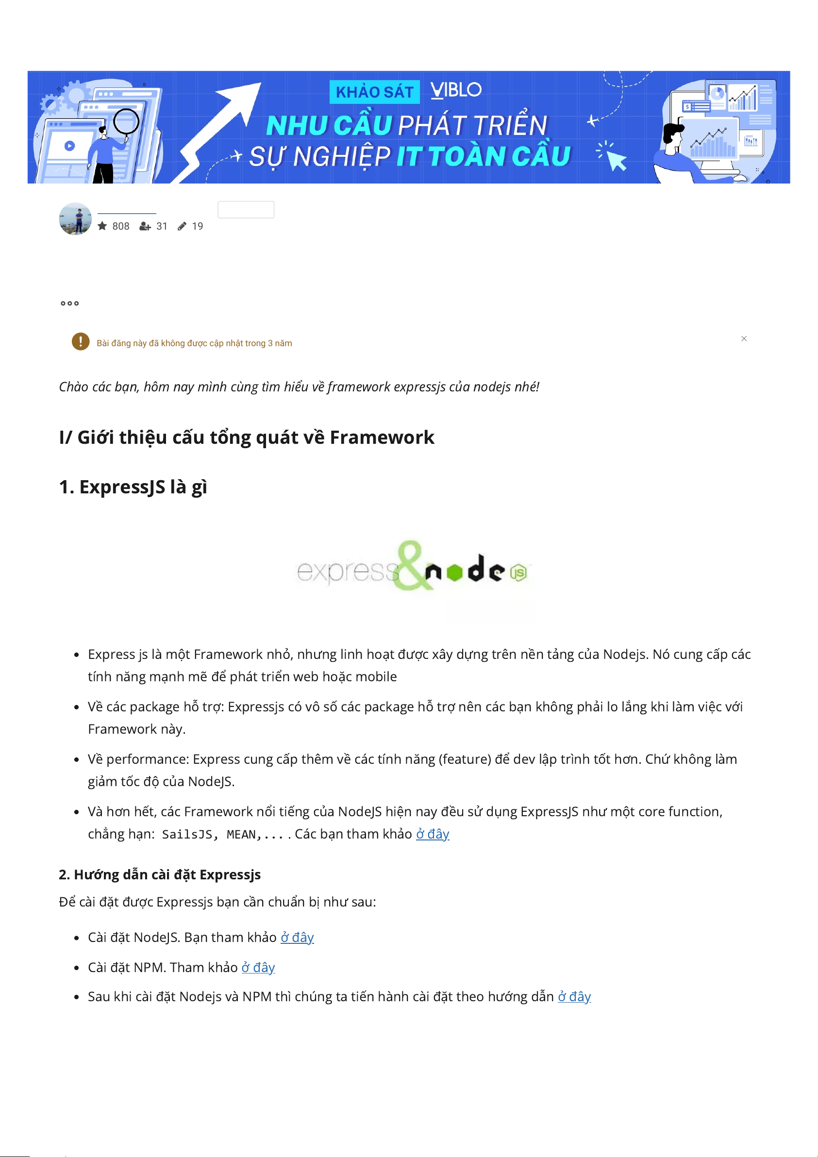 I/ Giới thiệu cấu tổng quát về Framework 1. ExpressJS là gì