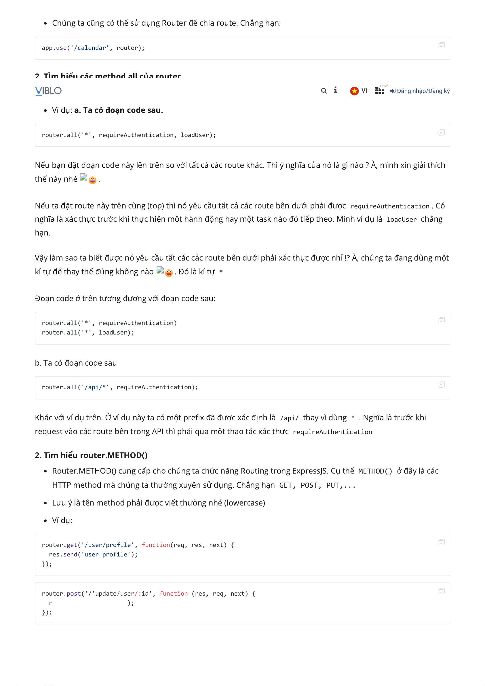 router.all('*', requireAuthentication) router.all('*', loadUser); b. Ta có đoạn code sau