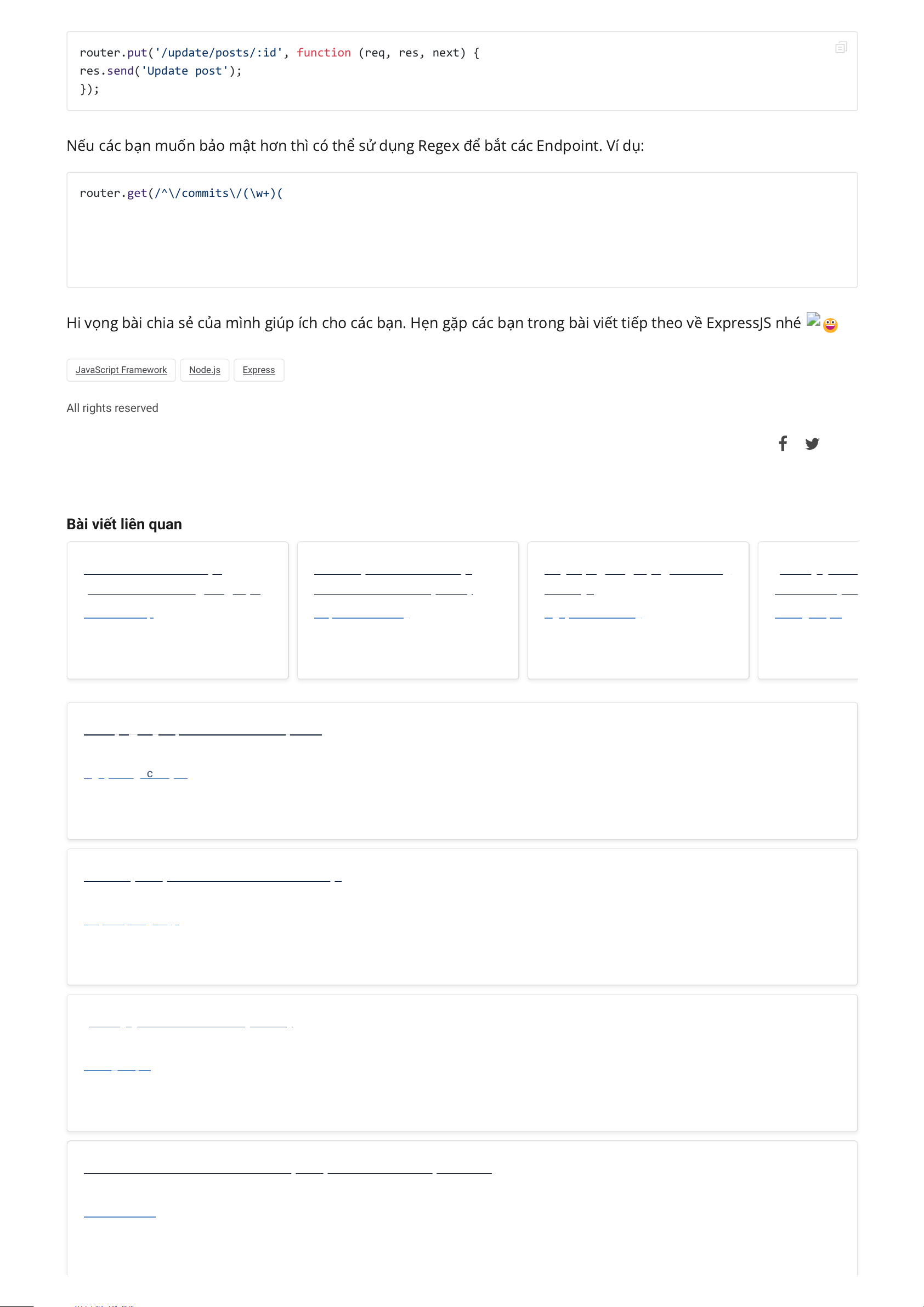 Hi vọng bài chia sẻ của mình giúp ích cho các bạn. Hẹn gặp các bạn trong bài viết tiếp theo về ExpressJS nhé 😃 JavaScript Framework Node.js Express All rights reserved Bài viết liên quan Làm thế nào cải thiện