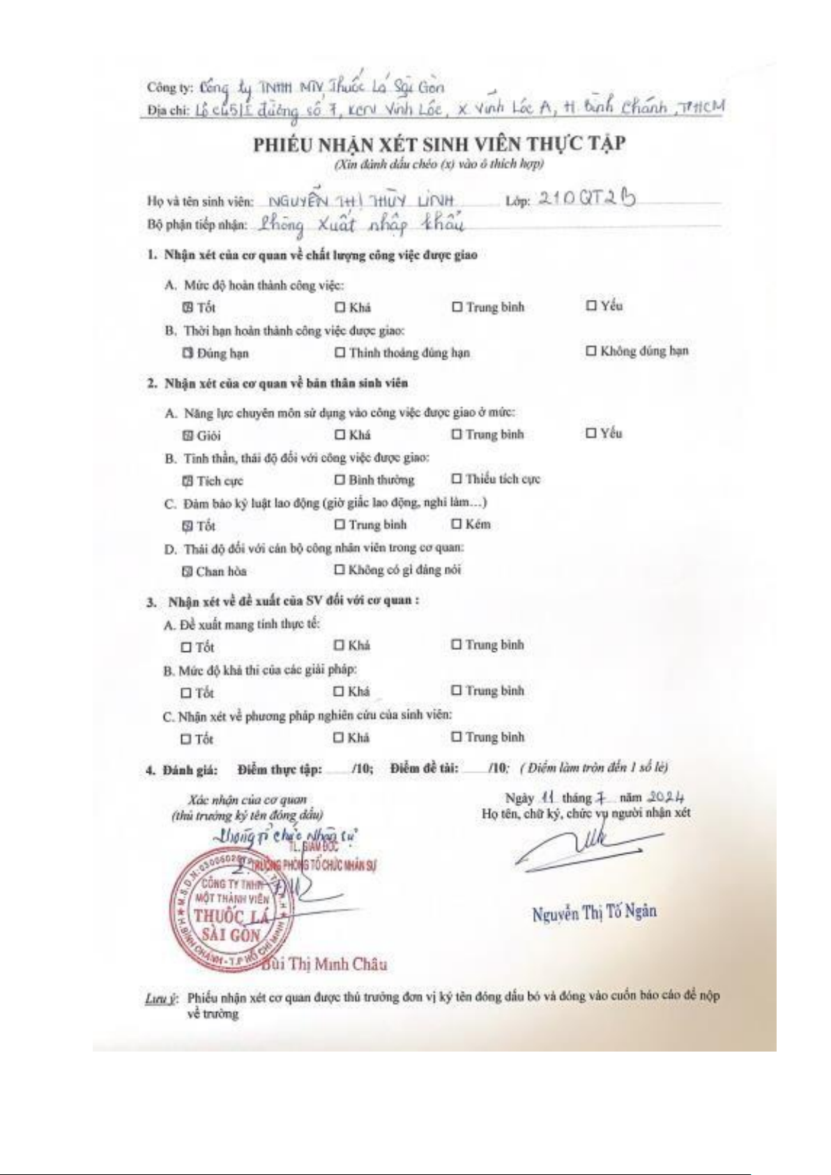 Em xin trân trọng gửi lời cảm ơn tới Công ty TNHH MTV Thuốc lá Sài Gòn