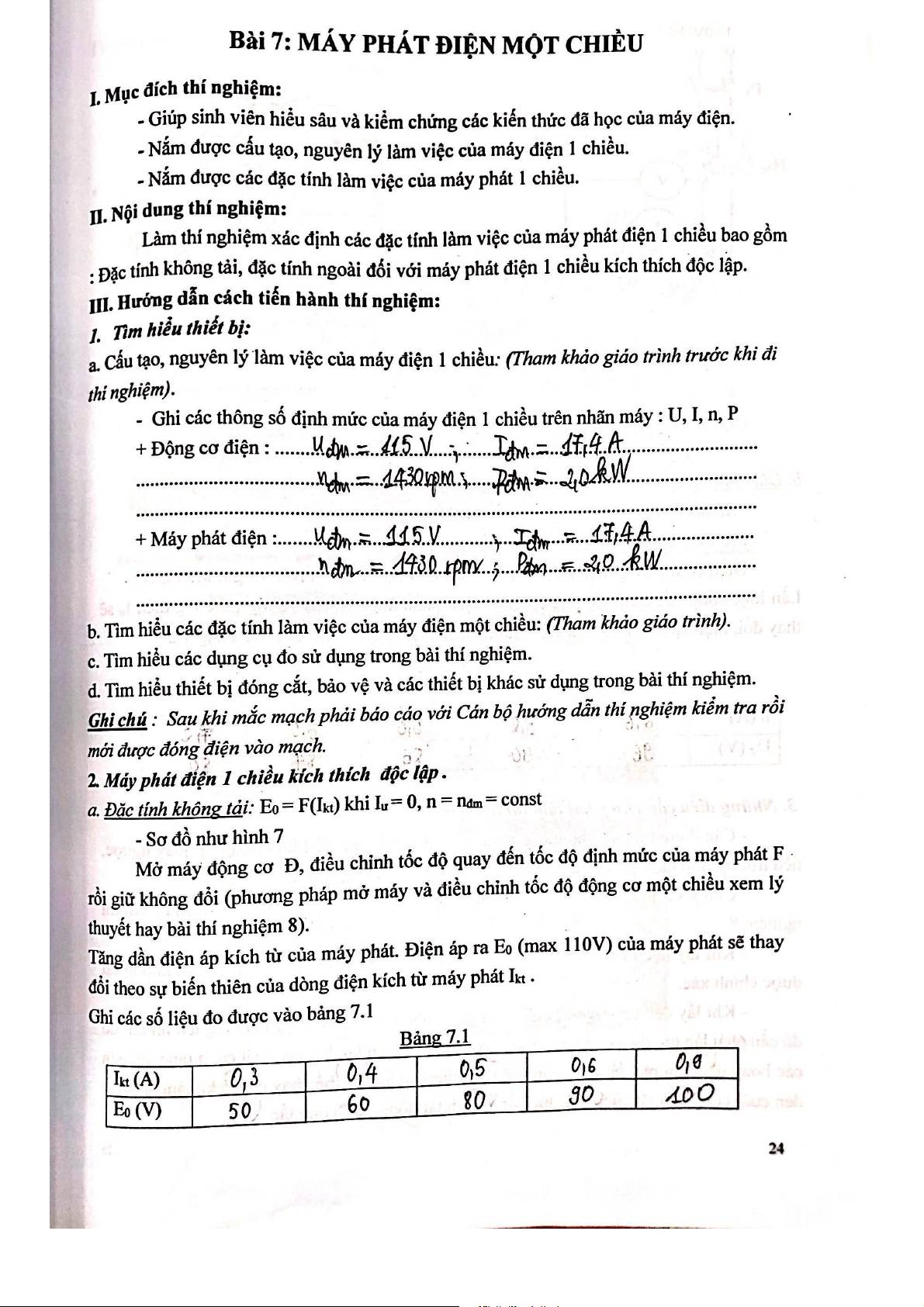 Đề cuối kỳ Môn Máy điện 1 | Đại học Bách Khoa Hà Nội