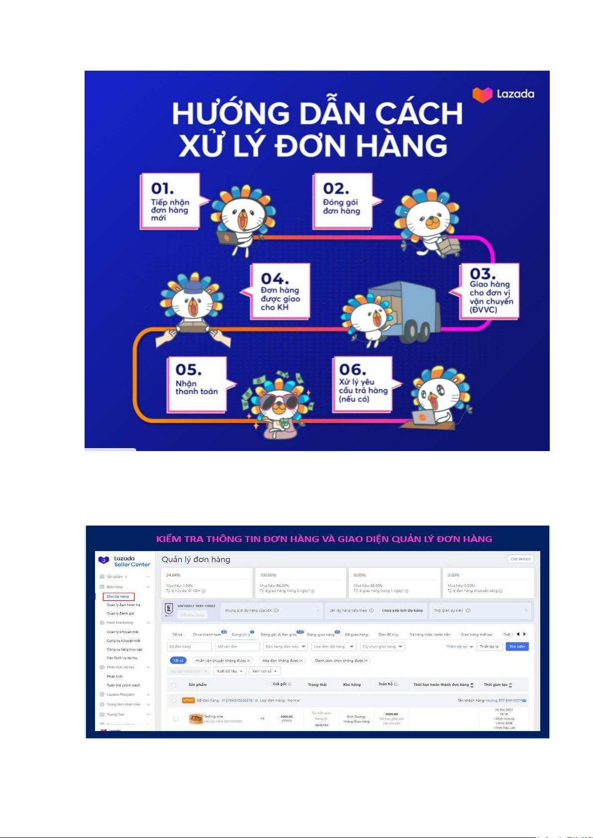 Bước 1: Tiếp nhận thông tin đơn hàng mới trên hệ thống Seller Centre, để tránh phát sinh