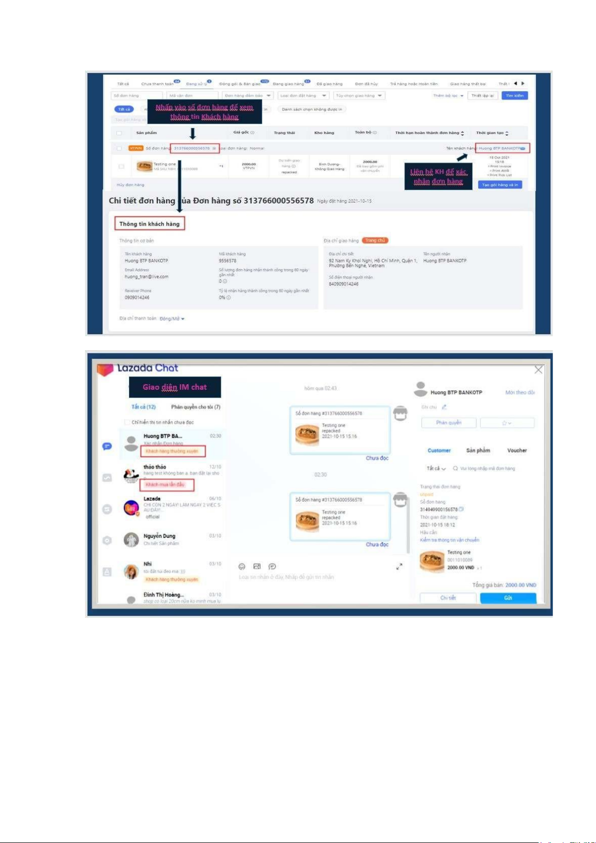 Khách hàng tại mục IM chat và Chi tiết của đơn hàng: lOMoAR cPSD| 61159950