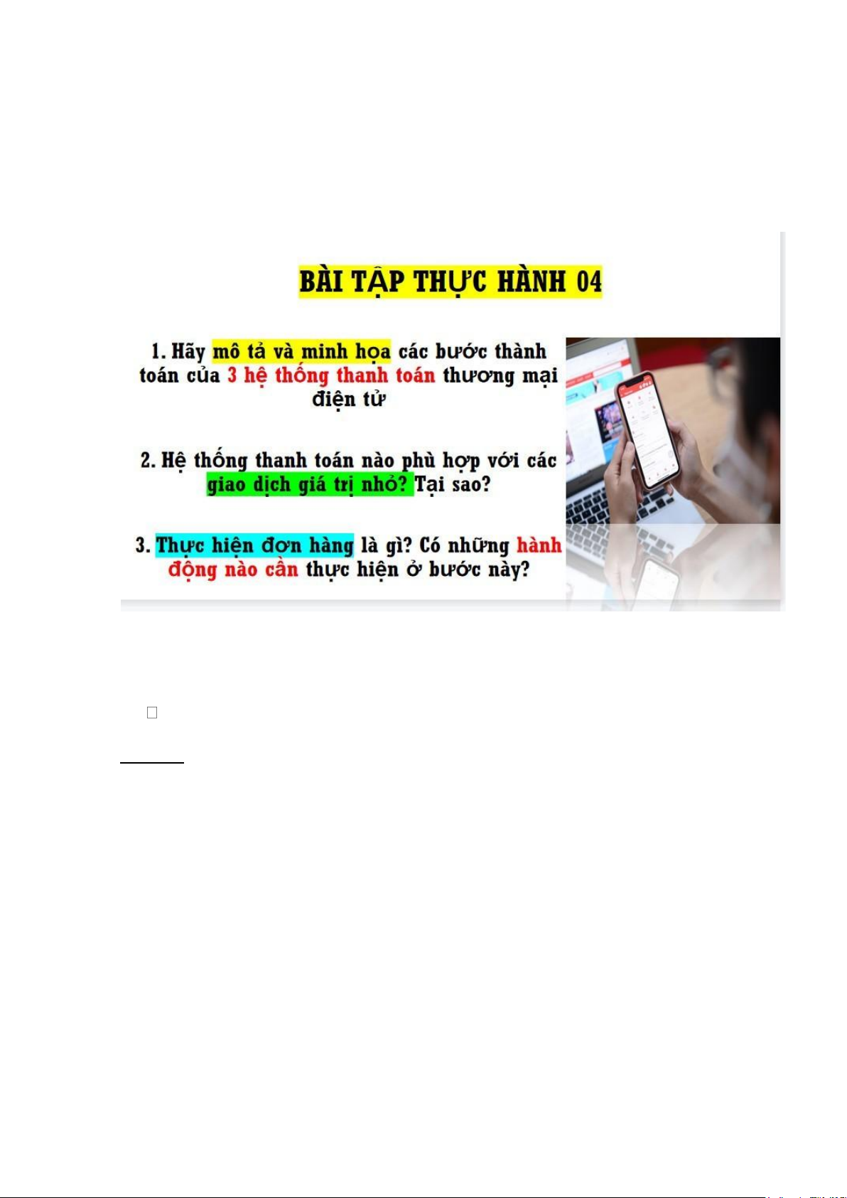 Câu 1: Hãy mô tả và minh họa các bước thanh toán của 3 hệ thống thanh toán thương mại điện tử Ví điện tử MOMO