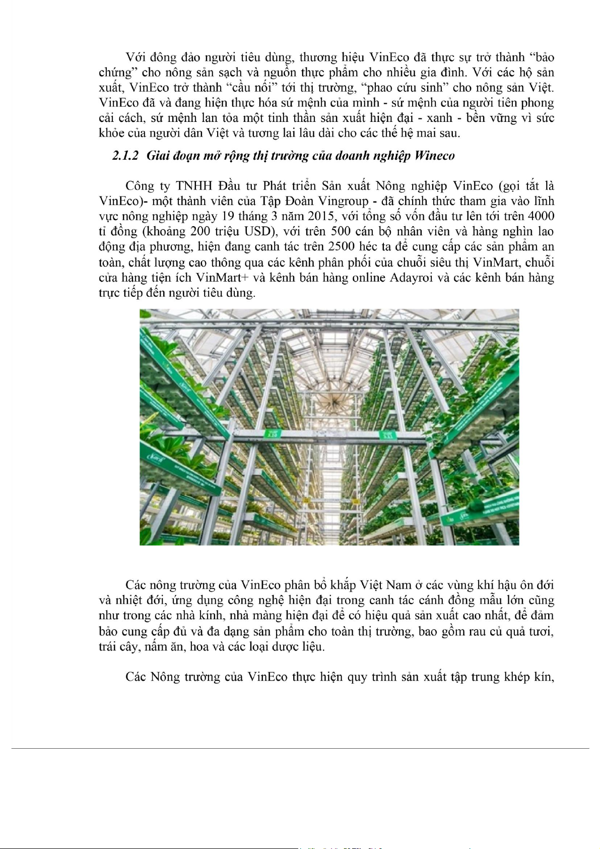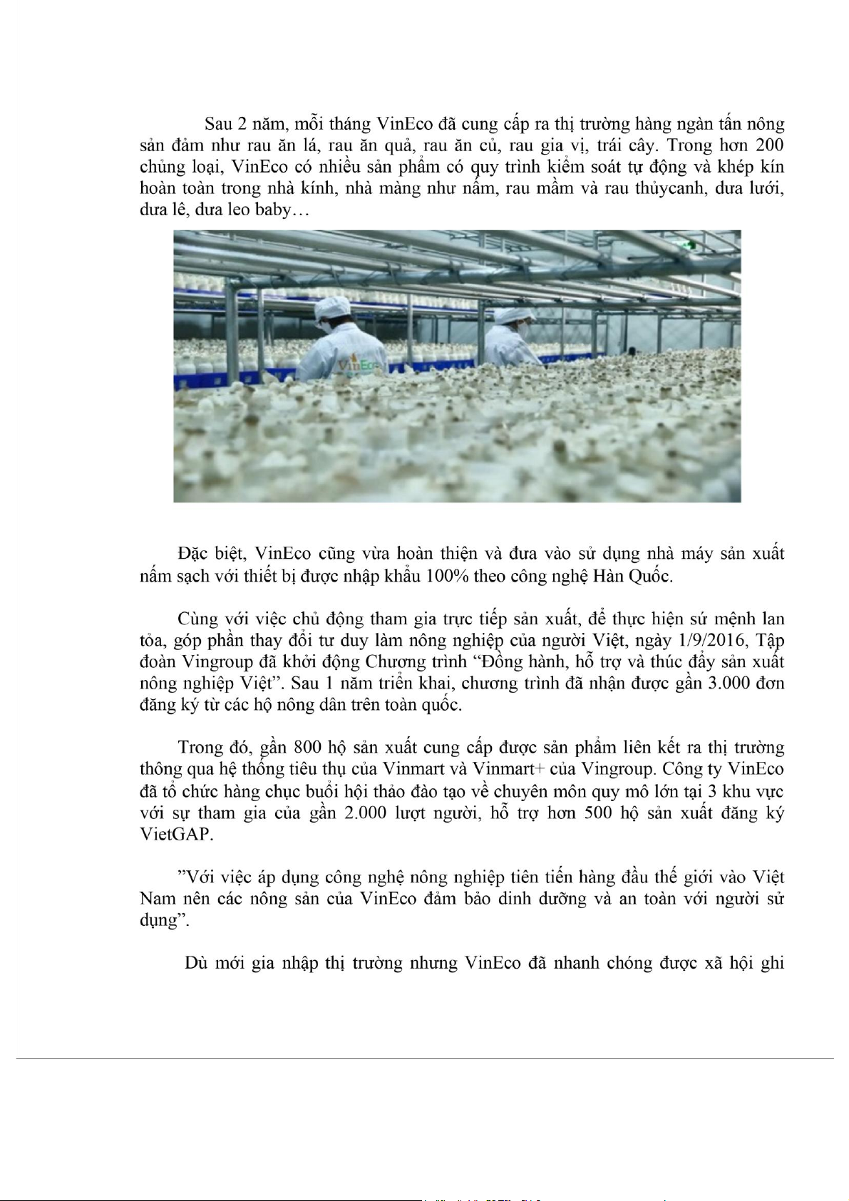 nông trường VinEco Tam Đảo (Vĩnh Phúc) vào năm 2016 Sử dụng nhà máy sản xuất