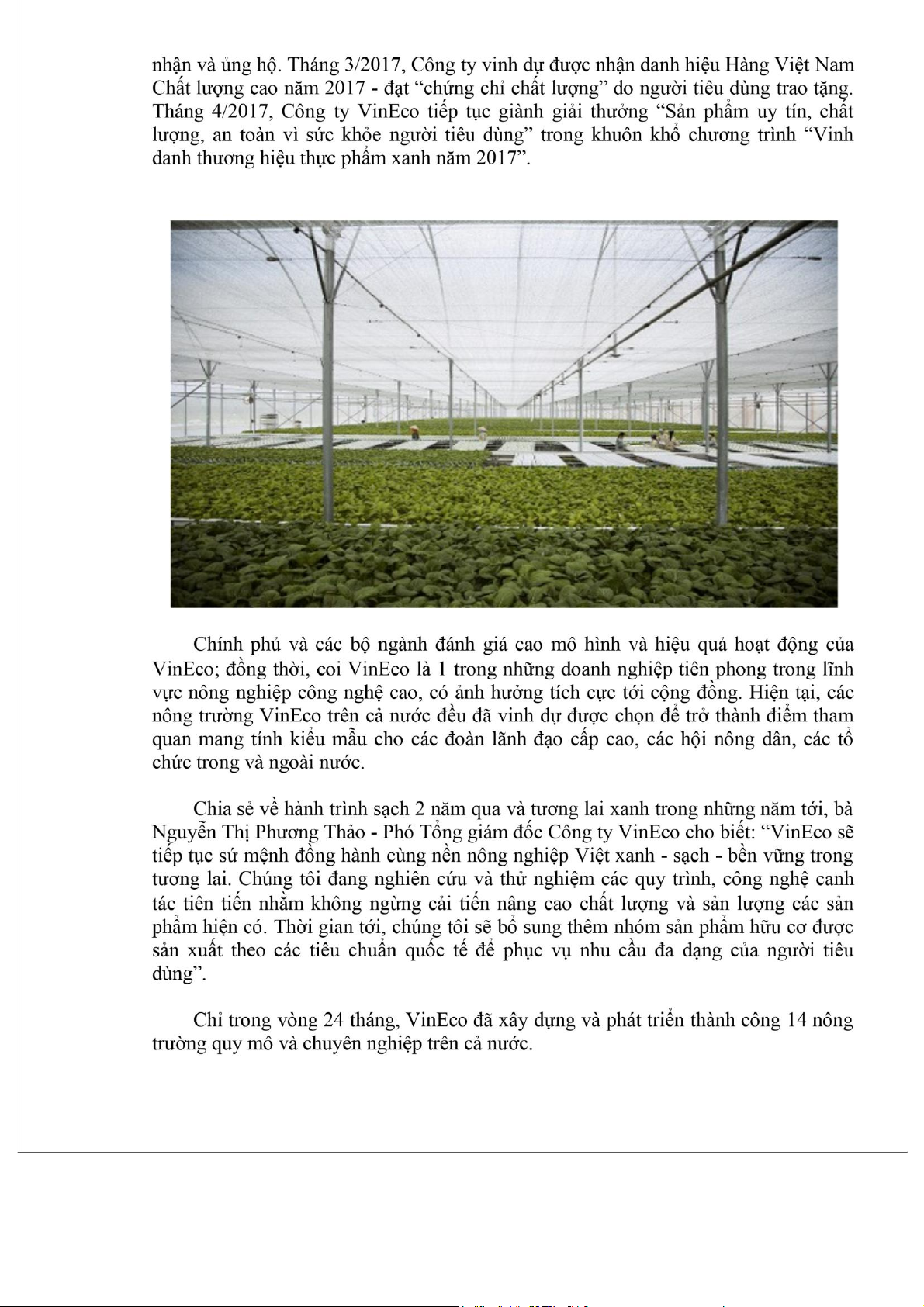 ”Chỉ trong vòng 24 tháng, VinEco đã xây dựng và phát triển thành công 14 nông