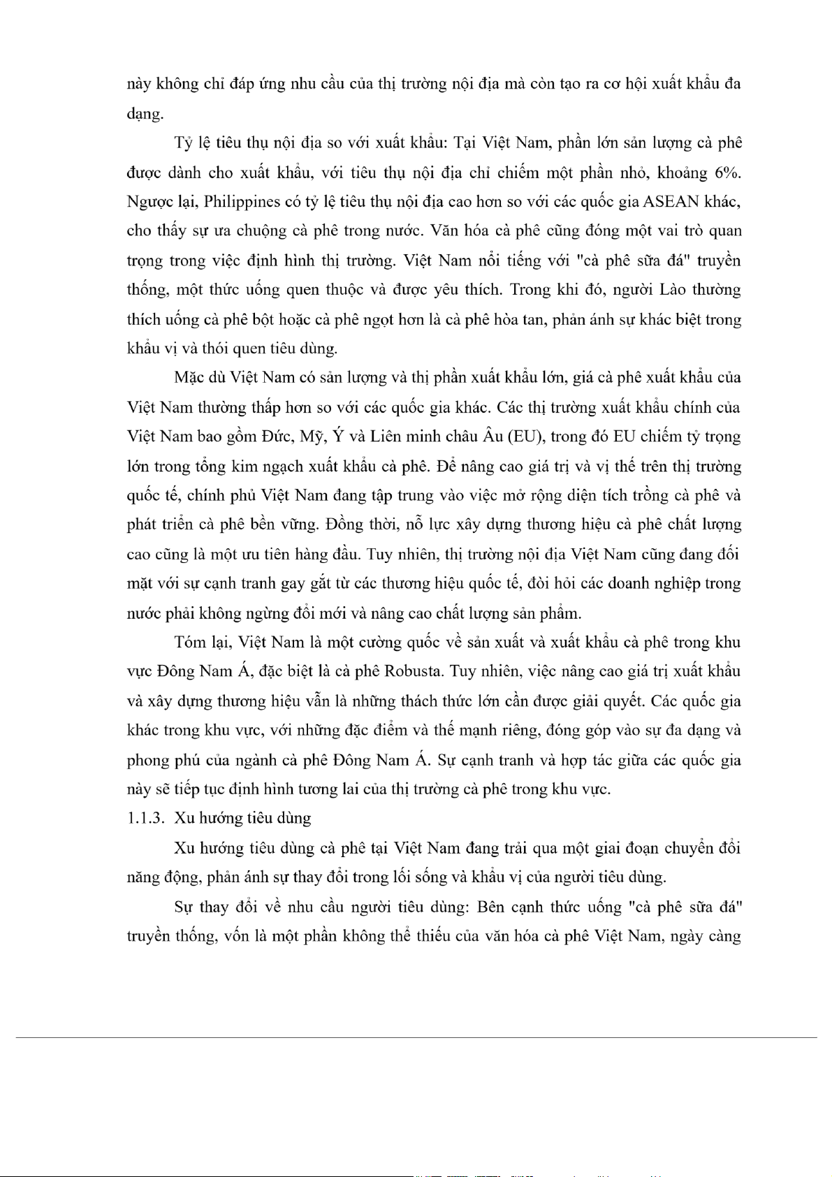 1.1.2. So sánh thị trường cà phê Việt Nam với các nước trong khu vực