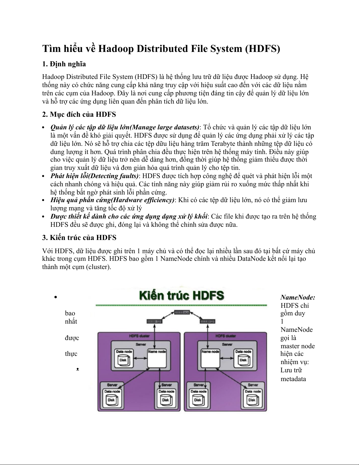 Hadoop Distributed File System (HDFS) là hệ thống lưu trữ dữ liệu được Hadoop sử dụng. Hệ