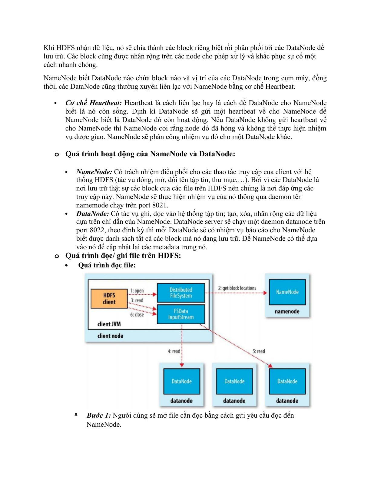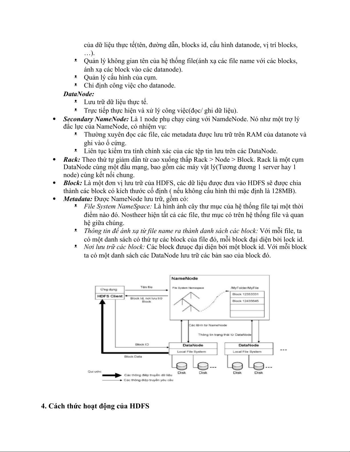 thống HDFS (tác vụ đóng, mở, đổi tên tập tin, thư mục,…). Bởi vì các DataNode là
