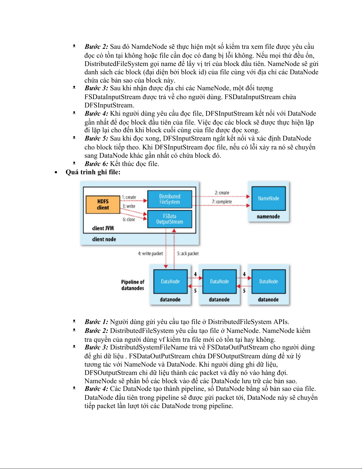 DataNode: Có tác vụ ghi, đọc vào hệ thống tập tin; tạo, xóa, nhân rộng các dữ liệu