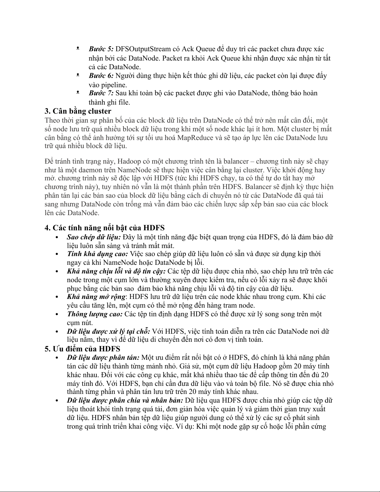 Bước 7: Sau khi toàn bộ các packet được ghi vào DataNode, thông báo hoàn thành ghi file. 3. Cân bằng cluster