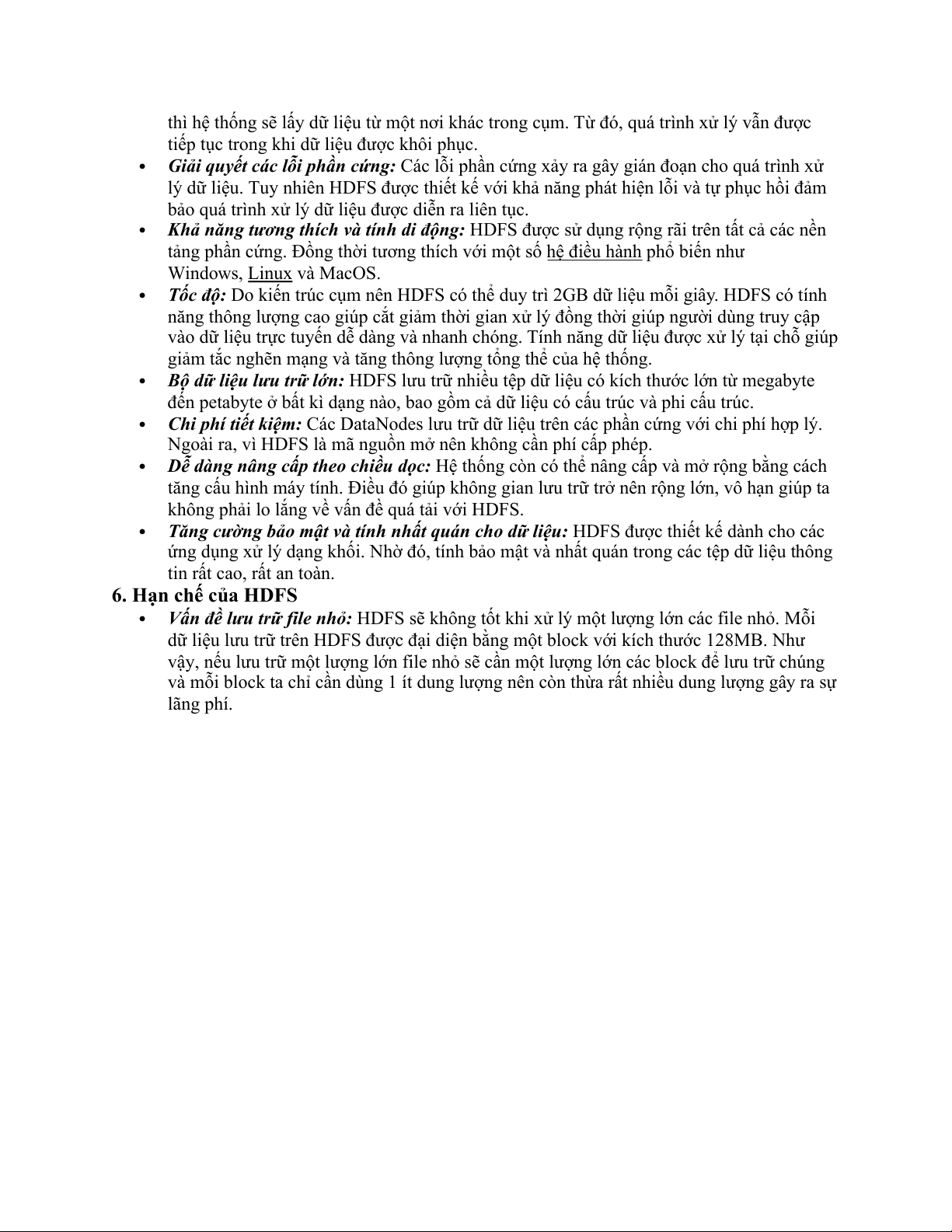 dữ liệu. HDFS nhân bản tệp dữ liệu giúp người dung có thể xử lý các sự cố phát sinh