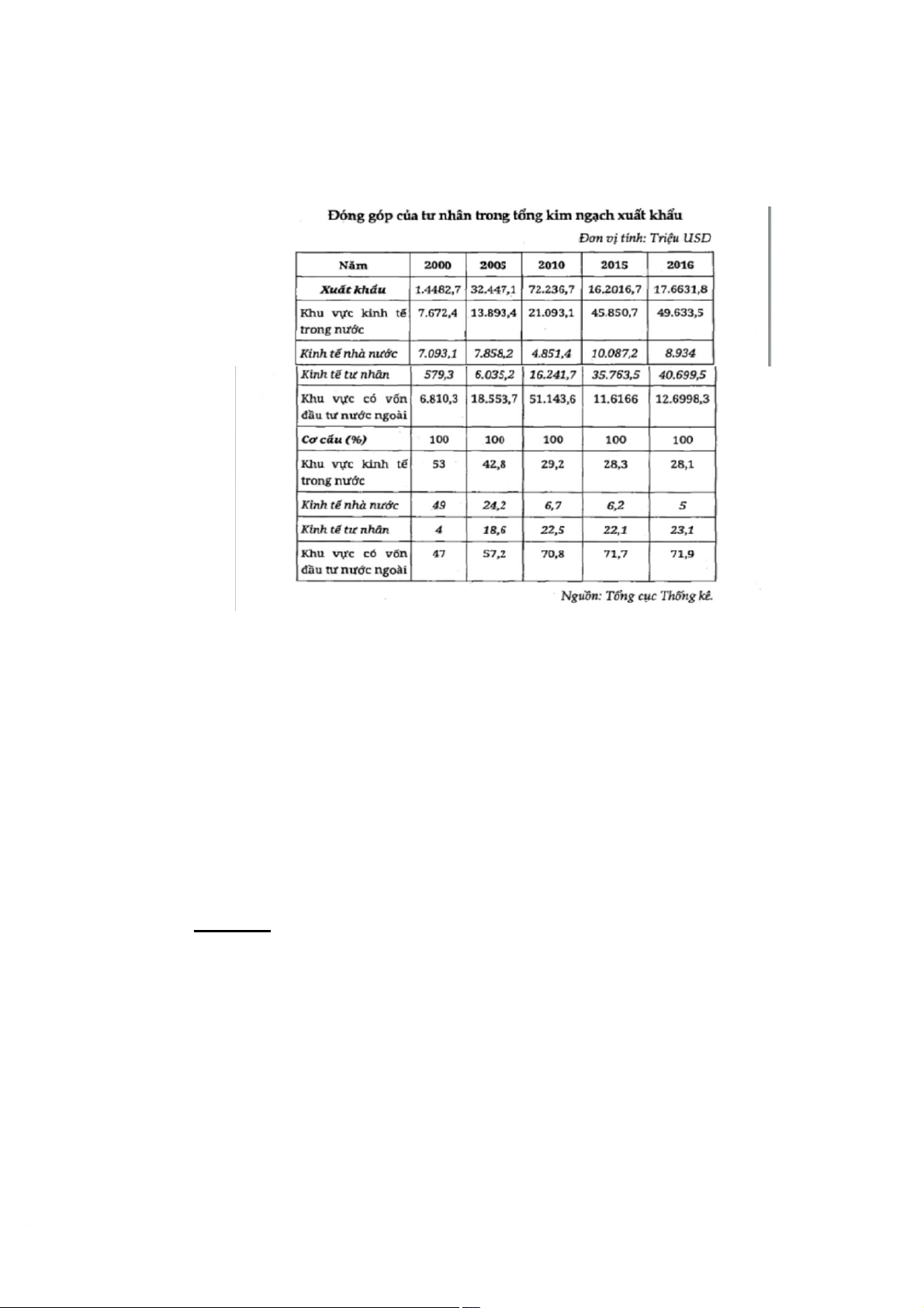 bé bước ra th trường xuất khẩu với tỷ trọng 4% năm 2000 đến năm 2016, kinh tế tư