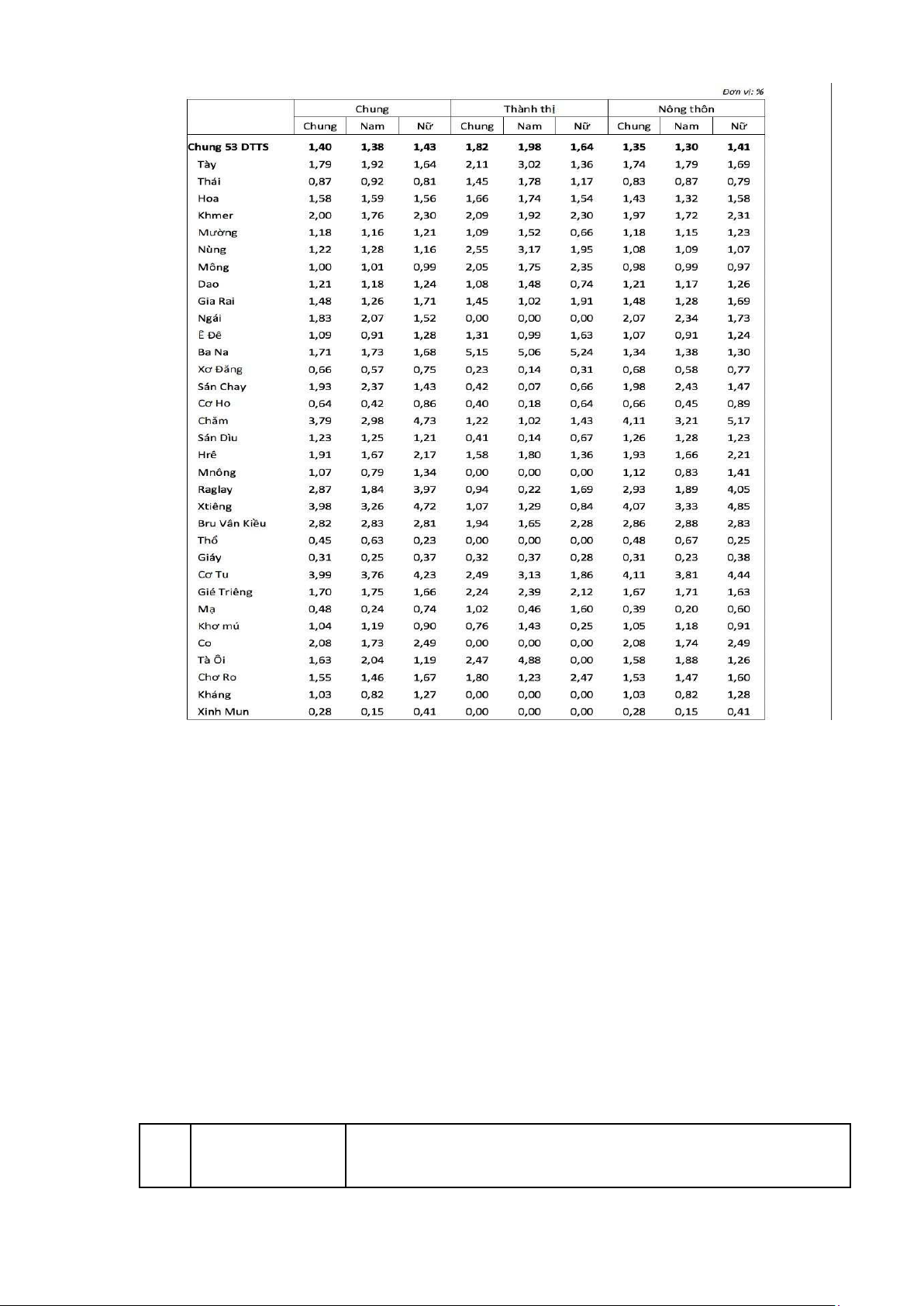 của 53 DTTS tại Việt Nam cho thấy khoảng cách giới trong các nhóm DTTS và