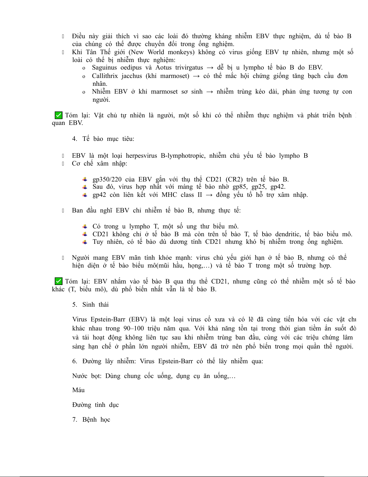 EBV là một loại herpesvirus B-lymphotropic, nhiễm chủ yếu tế bào lympho B Cơ chế xâm nhập: