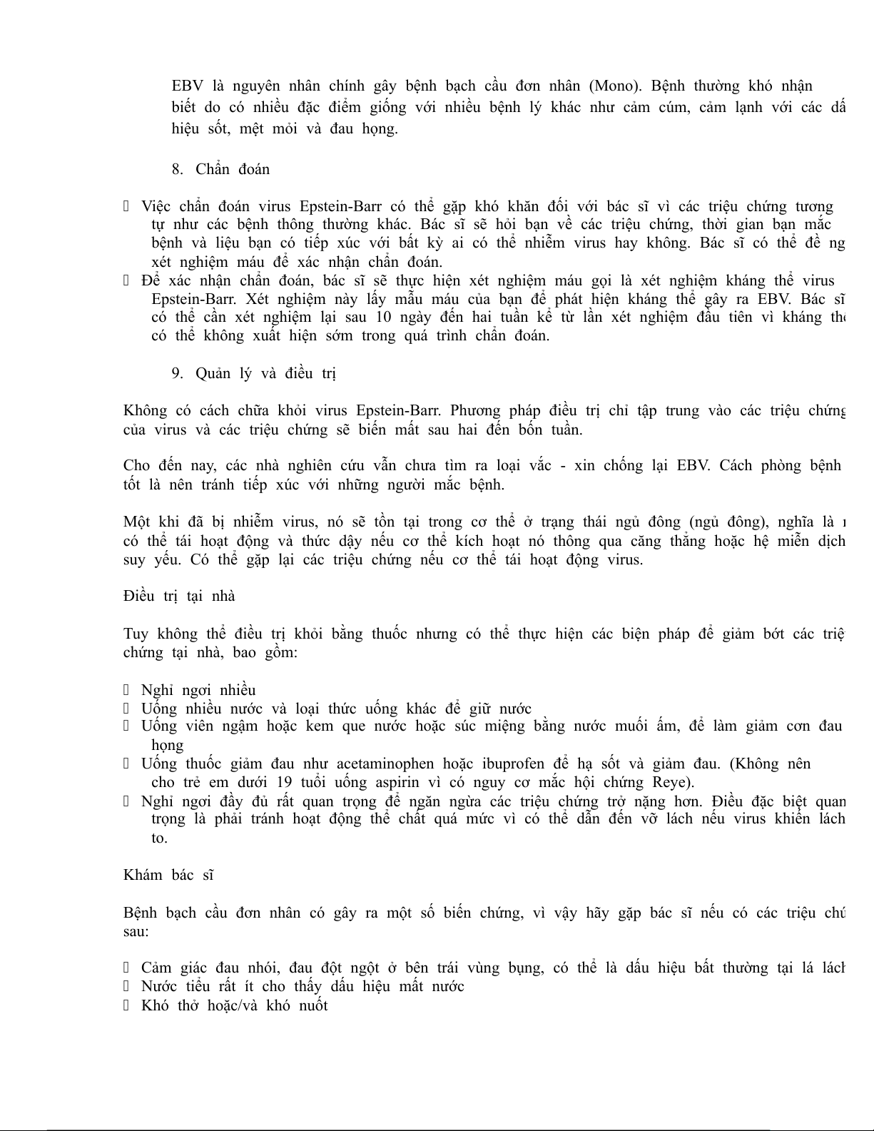 EBV là nguyên nhân chính gây bệnh bạch cầu đơn nhân (Mono). Bệnh thường khó nhận