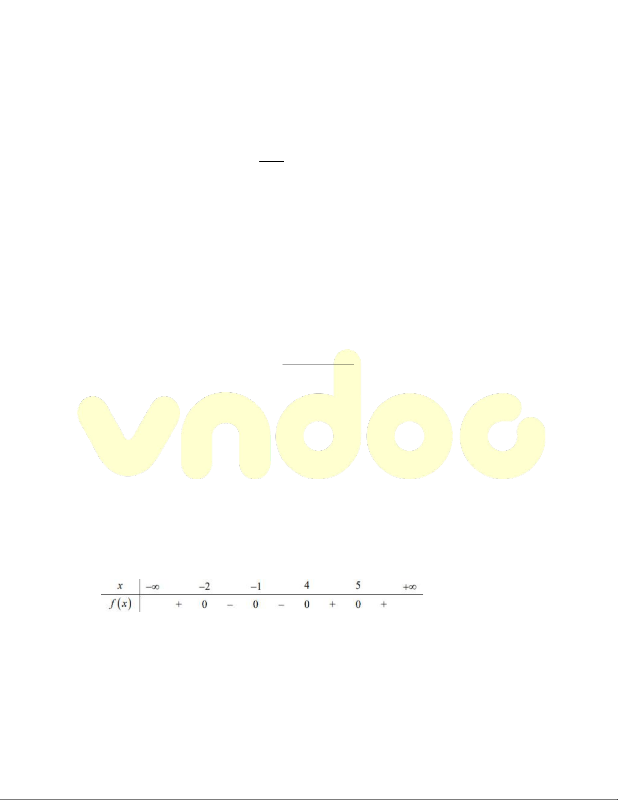 Ta được bảng xét dấu của f x như sau: Kết luận: