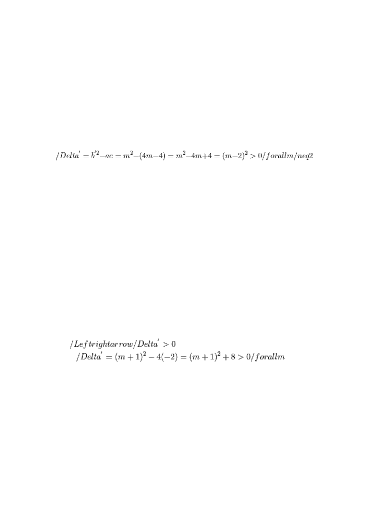 2. Với mọi m thì phương trình luôn có hai nghiệm phân biệt x1, x2 thỏa mãn hệ thức Vi-ét:
