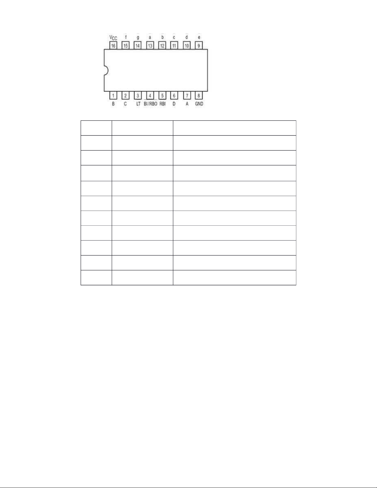 Lưu trữ hoặc nhấp nháy mã BCD 6 D Đầu vào BCD của IC 7 A Đầu vào BCD của IC 8 GND Chân nối mass 9 e Đầu vào 1 LED 7 đoạn 10 d Đầu vào 2 LED 7 đoạn 10 O o c S | 33 080 11 c Đầu vào 3 LED 7 đoạn 12 b Đầu vào 4 LED 7 đoạn 13 a Đầu vào 5 LED 7 đoạn 14 g Đầu vào 6 LED 7 đoạn 15 f Đầu vào 7 LED 7 đoạn 16 VCC Cấp nguồn