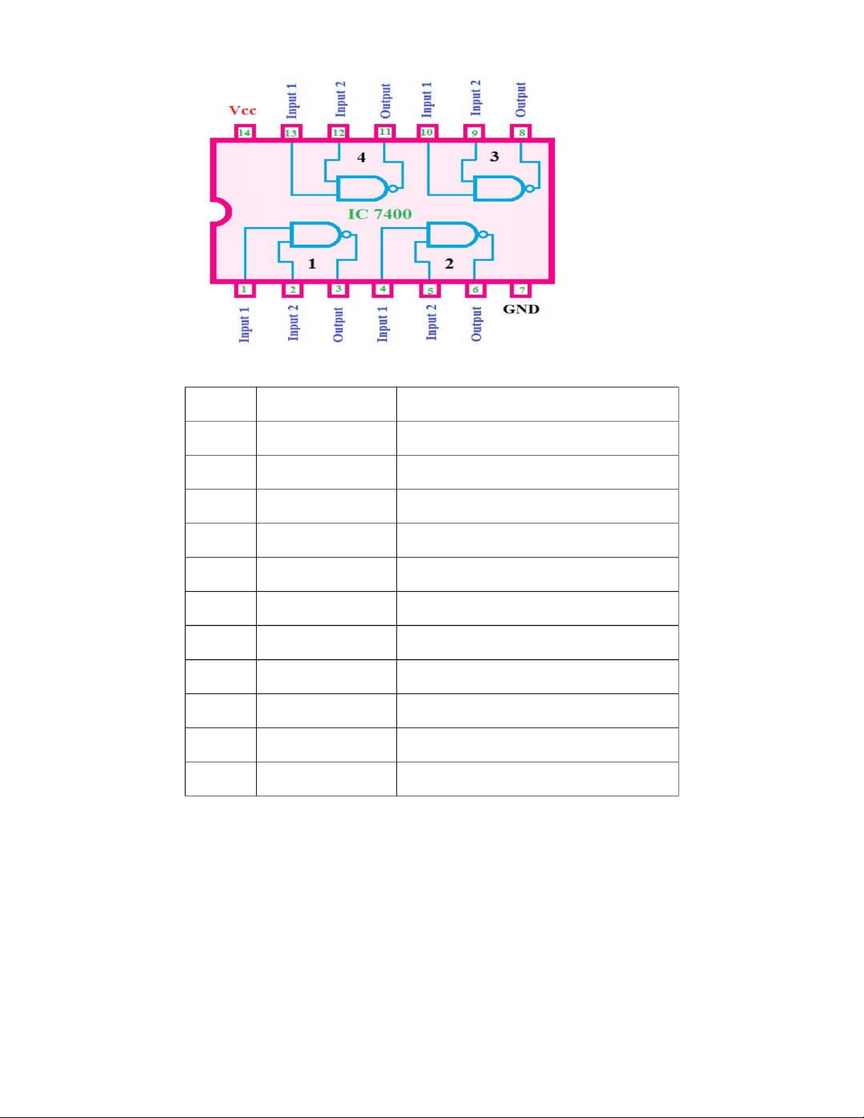 IC 7400 là một chip 14 chân và nó bao gồm bốn cổng NAND 2 đầu vào. Mỗi